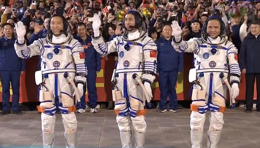 20時49分,張陸、武飛、張洪章3名航天員領(lǐng)命出征。空間站應(yīng)用與發(fā)展階段飛行任務(wù)總指揮部有關(guān)成員以及航天科技人員、各族群眾代表在現(xiàn)場為航天員乘組壯行。