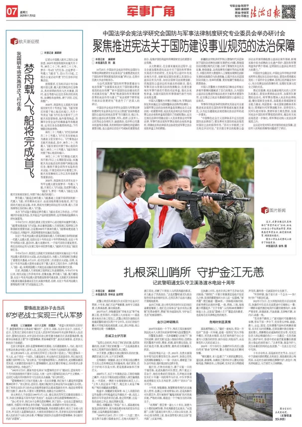 “希望大家到部隊(duì)后好好干,像雷鋒那樣甘當(dāng)革命的‘螺絲釘’,在學(xué)習(xí)、訓(xùn)練、生活中當(dāng)尖子,當(dāng)標(biāo)兵。”近日,在黑龍江省哈爾濱市方正縣人武部舉行的2025年歡送秋季新兵入伍活動(dòng)中,雷鋒生前戰(zhàn)友、87歲退役老兵徐元彬受邀為準(zhǔn)新兵們講述雷鋒故事,他教導(dǎo)全體新戰(zhàn)士要“學(xué)習(xí)雷鋒精神,青春奉獻(xiàn)軍營(yíng)”。新兵的身影里,還有徐元彬的孫子徐瑛蔚。