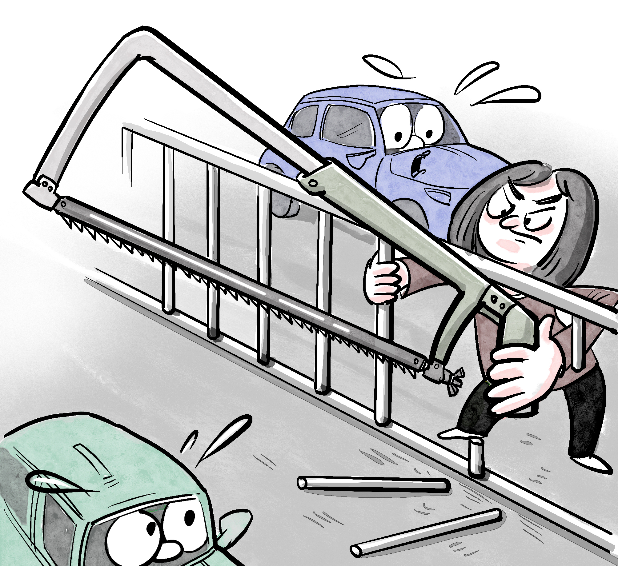 點(diǎn)評(píng):用鋼鋸鋸開的不只是隔離護(hù)欄,還有安全之網(wǎng)和法律之弦。如此不顧及公共安全,必須依法懲罰。