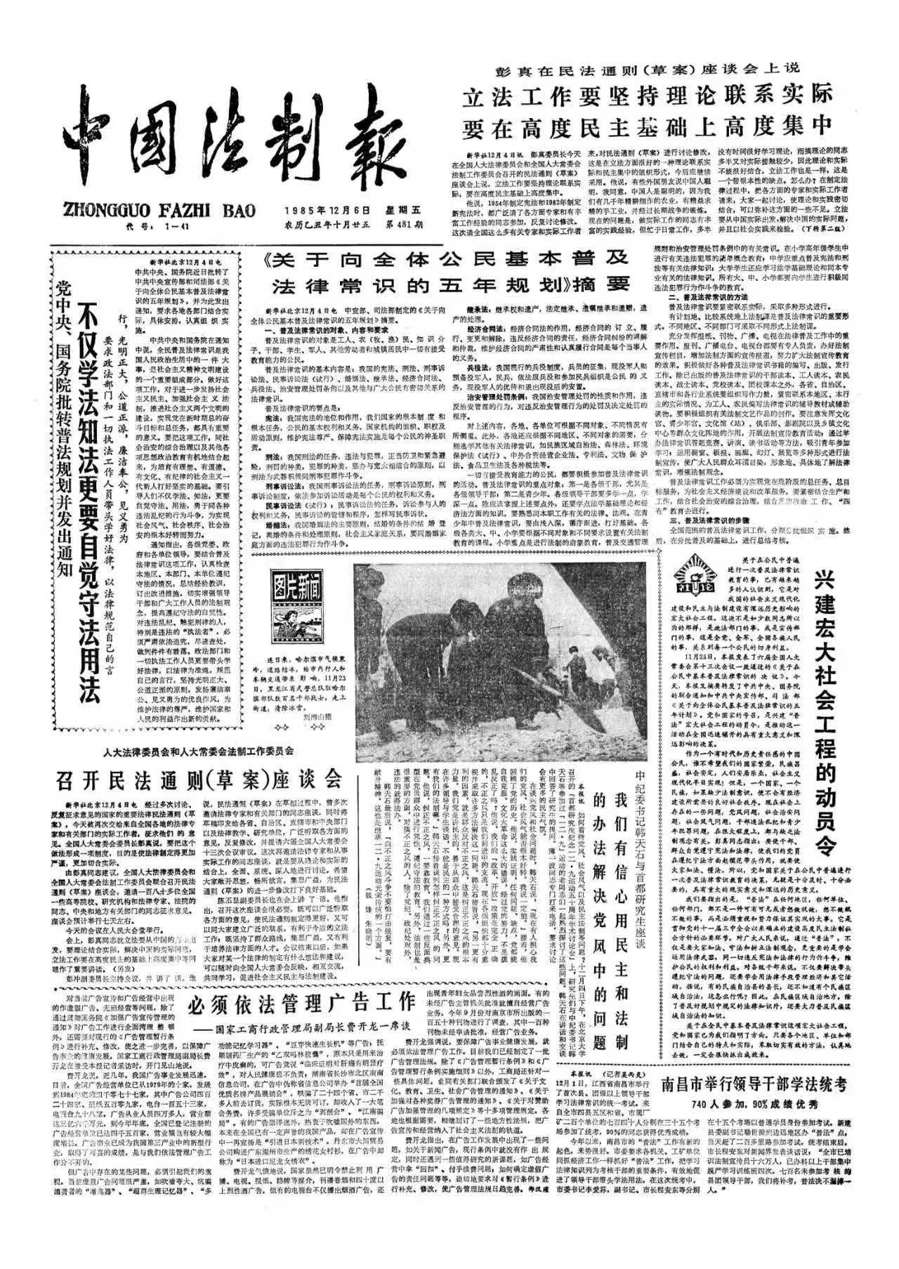 1985年11月5日,中共中央、國(guó)務(wù)院發(fā)出通知,轉(zhuǎn)發(fā)中央宣傳部、司法部《關(guān)于向全體公民基本普及法律常識(shí)的五年規(guī)劃》。通知明確指出,全民普及法律常識(shí)是我國(guó)人民政治生活中的一件大事,是社會(huì)主義精神文明建設(shè)的一個(gè)重要組成部分。同年11月22日,《全國(guó)人民代表大會(huì)常務(wù)委員會(huì)關(guān)于在公民中基本普及法律常識(shí)的決議》由六屆全國(guó)人大常委會(huì)第十三次會(huì)議通過(guò)。自此,國(guó)家以五年為周期,有計(jì)劃、有步驟地在全體公民中開(kāi)展法治宣傳教育,全民普法正式走進(jìn)千家萬(wàn)戶的日常生活。