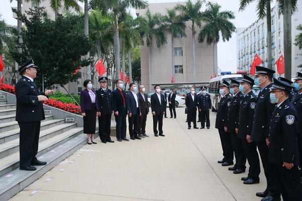 在深圳監(jiān)獄,蔣溪林一行看望慰問了深圳監(jiān)獄領導班子成員和警察代表,并向他們致以節(jié)日的問候。蔣溪林指出,深圳監(jiān)獄在確保疫情零輸入、零感染,始終確保監(jiān)獄安全穩(wěn)定的同時,開展排查建監(jiān)二十多年以來減刑、假釋、暫予監(jiān)外執(zhí)行專項案件近3萬宗,無一起需要依法糾正的案件,高分通過廣東省規(guī)范化示范監(jiān)獄創(chuàng)建,順利收押深圳籍重刑犯、香港特區(qū)罪犯,建設評估矯正中心推進精準科學矯正,建設綜合服務大廳提升為民服務質效,成績的取得實屬不易。蔣溪林勉勵大家繼續(xù)堅守崗位,認真履行好教育改造罪犯責任,抓好疫情防控工作,確保場所安全穩(wěn)定。