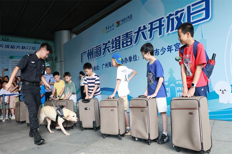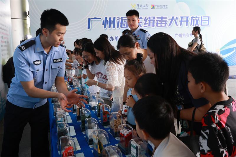 6月22日,廣州海關(guān)聯(lián)合廣州市少年宮舉辦“緝毒犬開放日”活動(dòng),通過(guò)寓教于樂(lè)的禁毒宣傳活動(dòng),讓廣大市民朋友在趣味游戲中了解海關(guān)打擊毒品走私工作成效、禁毒常識(shí),并與海關(guān)緝毒犬進(jìn)行現(xiàn)場(chǎng)親密互動(dòng),活動(dòng)吸引了400余名市民參加。