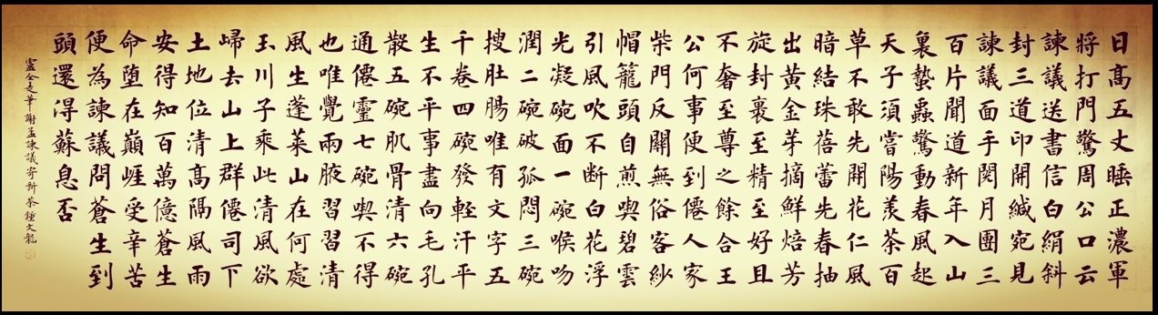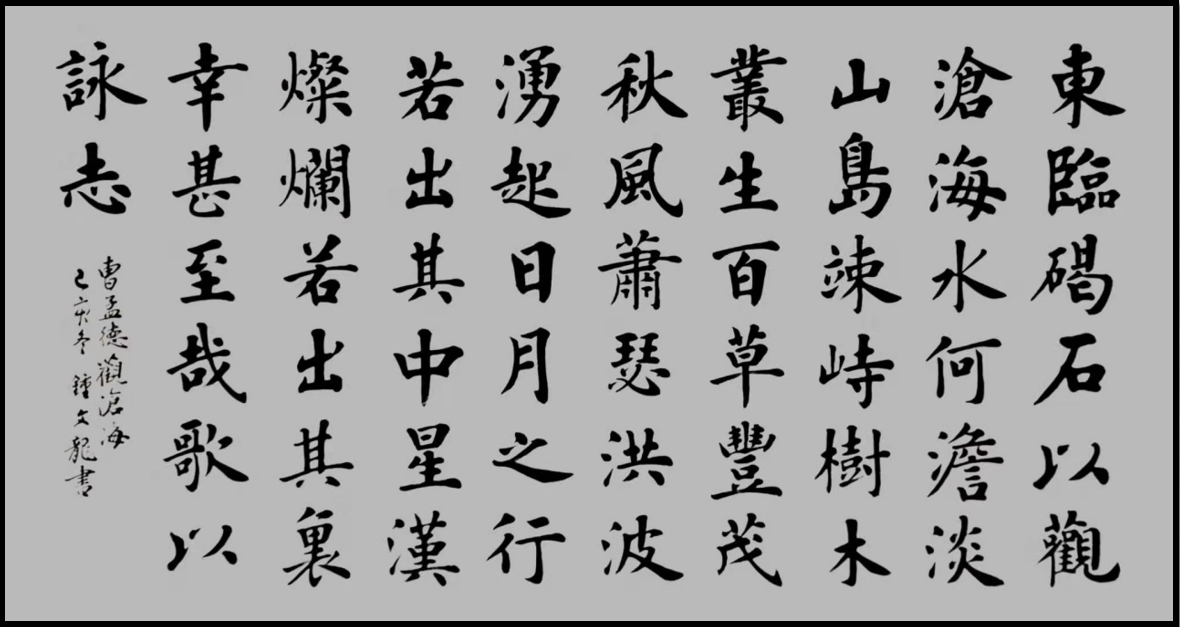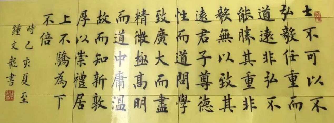 2010年,鐘文龍拜盧中南先生為師,由于自身基礎(chǔ)牢固加之得到名師指點,其楷書技藝得以迅速提高,大幅飛躍。