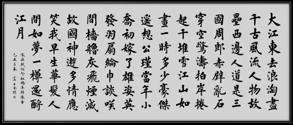 盧中南先生能夠從古法中孕育新知,推陳出新,將歐楷的險絕化為溫潤,在傳承中不斷創(chuàng)新,形成了雄強厚重、磅礴大氣的個人風(fēng)格。