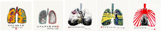 在舒勇“每日一畫(huà)”創(chuàng)造的眾多意象中,《同呼吸共命運(yùn)》系列大概是最簡(jiǎn)單至極的表達(dá)。作品運(yùn)用“肺”的基本形態(tài)作為背景容器,將世界各國(guó)著名藝術(shù)家作品及思想融進(jìn)了這個(gè)基本形態(tài)的肺容器中。以此來(lái)表達(dá),我們雖然生活在不同的地方,來(lái)自不同的國(guó)家,擁有不同的膚色、不同的文化,但是我們有同樣的肺,呼吸在同一片藍(lán)天下。