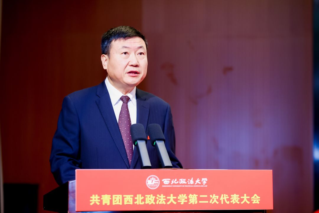 郭武軍代表學校黨委向大會的召開表示熱烈祝賀,向長期以來關心和支持學校共青團工作的共青團陜西省委、省教育團工委以及兄弟院校表示感謝,并充分肯定了學校各級團組織團結帶領廣大團員青年取得的成績和貢獻。他強調(diào)西法大青年要堅定理想信念,樹立報國之志,以昂揚之姿馳騁青春賽道;要傳承紅色基因,涵養(yǎng)浩然之氣,以擔當之勇砥礪前行之路;要勇立時代前沿,提升創(chuàng)新之能,以進取之心探索未知領域;要時刻牢記以人民為中心,踐行法治精神,在中國式現(xiàn)代化建設中挺膺擔當。