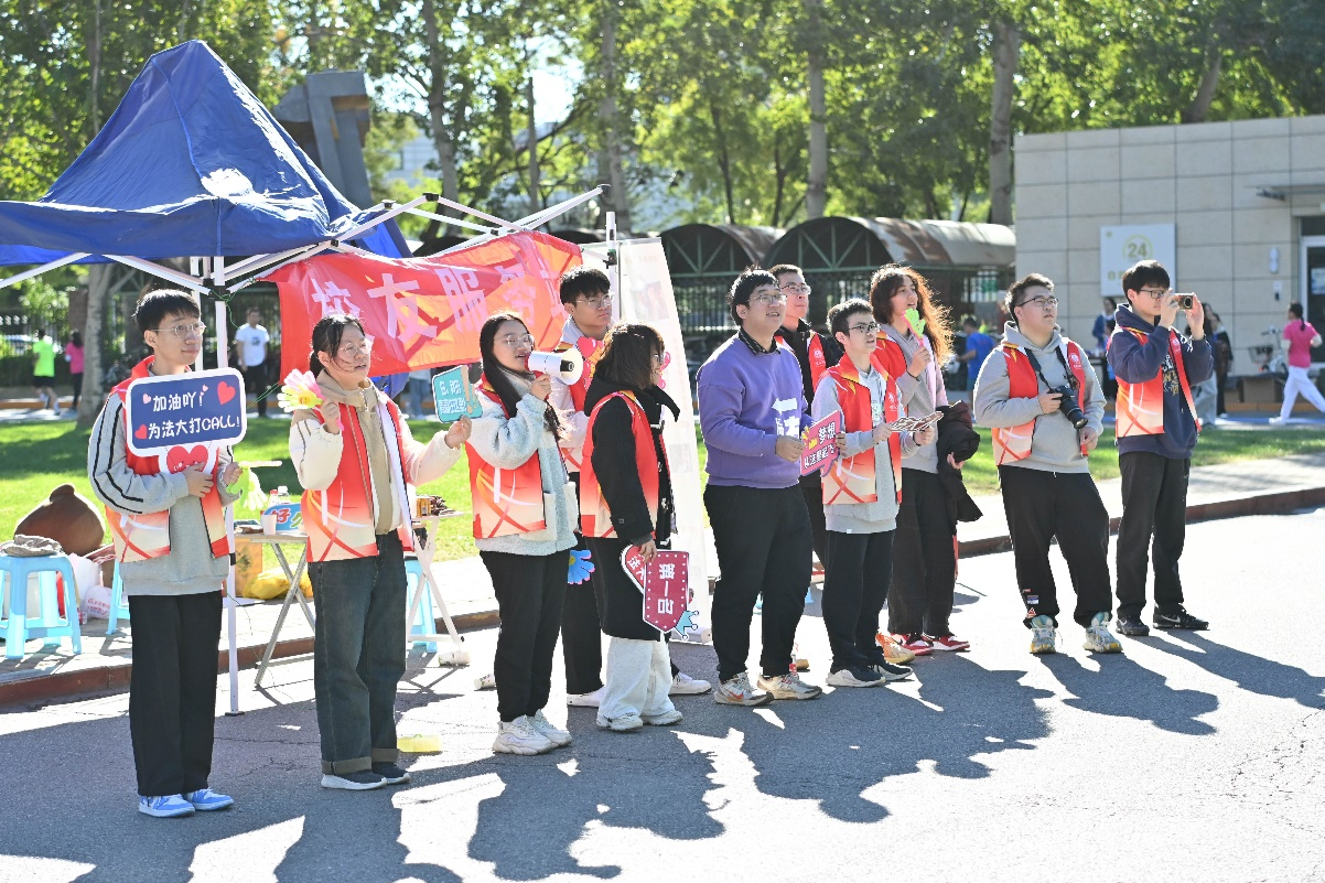 賽道兩旁站滿(mǎn)了為運(yùn)動(dòng)員加油的同學(xué),揮舞著加油棒,擊鼓呼喊著“運(yùn)動(dòng)員加油”的口號(hào)。志愿者、安保人員、醫(yī)務(wù)人員也堅(jiān)守崗位,用熱情的服務(wù)和忙碌的身影保障比賽順利進(jìn)行。