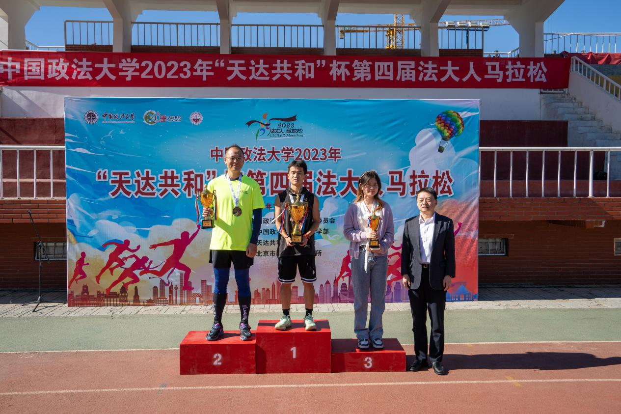 證據(jù)科學(xué)研究院研究生王東亞同學(xué)在歡呼聲中第一個(gè)沖過(guò)了終點(diǎn)線(xiàn)。教工朱林、校友蒲彥萍、證據(jù)科學(xué)研究院王東亞同學(xué)、法學(xué)院杜睿思同學(xué)分別為第四屆法大人馬拉松教工校友男子組、教工校友女子組、學(xué)生男子組、學(xué)生女子組冠軍。刑事司法學(xué)院、社會(huì)學(xué)院分獲甲、乙組團(tuán)體第一。