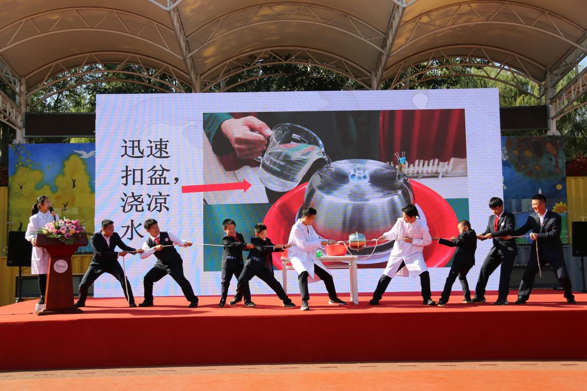 這場嘉年華啟動儀式上,中小學科技課程、科技戲劇、人工智能展演成為了焦點,從奮力沖上蒼穹的“水火箭”,到馬德堡半球實驗的再現(xiàn),再到機器人的舞蹈表演,每一個科學實驗都在孩子們歡喜的尖叫聲中揭開神秘面紗。參加科學實驗展演的孩子們個個眼光中充滿了自信和希望,沉著冷靜、默契配合,詮釋科學實驗、科學反應、科學原理或科研創(chuàng)新成果及技術。