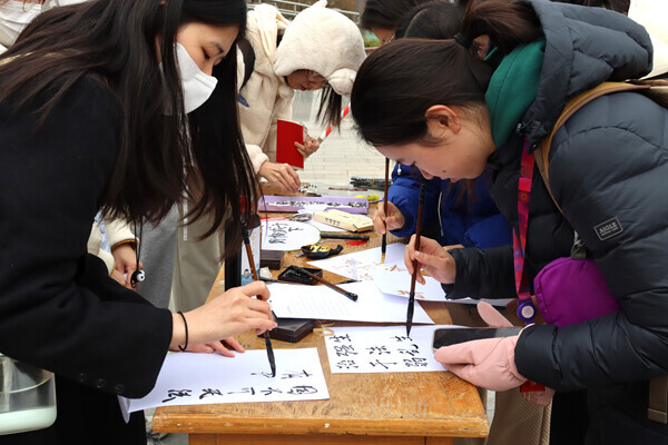 同一天,主題活動在清華大學學生服務中心前舉辦。活動通過限時背誦憲法名言、法律知識問答等游戲方式,向師生普及憲法,引導學習憲法。現(xiàn)場設計了“想點大事”“三行情書”“與法同行”“現(xiàn)身‘書法’”等活動,鼓勵師生們以筆書寫憲法意,以心感悟憲法情。現(xiàn)場還準備了帶有宣傳法治內(nèi)容的小夜燈、筆記本、卡套、文件夾等文創(chuàng)獎品。