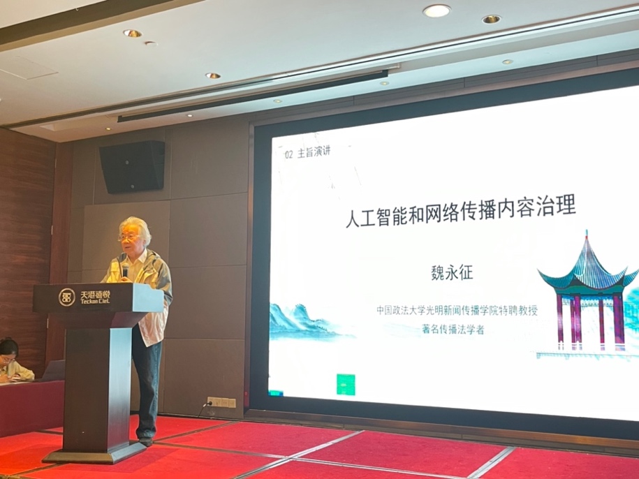 主旨演講環(huán)節(jié)由華東政法大學(xué)傳播學(xué)院彭桂兵教授主持,著名傳播法學(xué)者、中國政法大學(xué)新聞傳播學(xué)院特聘教授魏永征,北京外國語大學(xué)新聞傳播學(xué)院教授展江,南京師范大學(xué)新聞傳播學(xué)院二級教授、中國新聞史學(xué)會媒介法規(guī)與倫理專業(yè)委員會理事長顧理平,暨南大學(xué)新聞與傳播學(xué)院二級教授林愛珺分別以“人工智能和網(wǎng)絡(luò)傳播內(nèi)容治理”“英烈保護:執(zhí)法與司法初窺”“從封閉到開放:隱私內(nèi)涵的現(xiàn)代性演進”“萬物智聯(lián)的云生存邏輯”為題做了主旨演講,就傳媒法治、文化法治領(lǐng)域的重大問題展開研討,共同探討了傳媒法治、文化法治領(lǐng)域的理論與實踐問題。