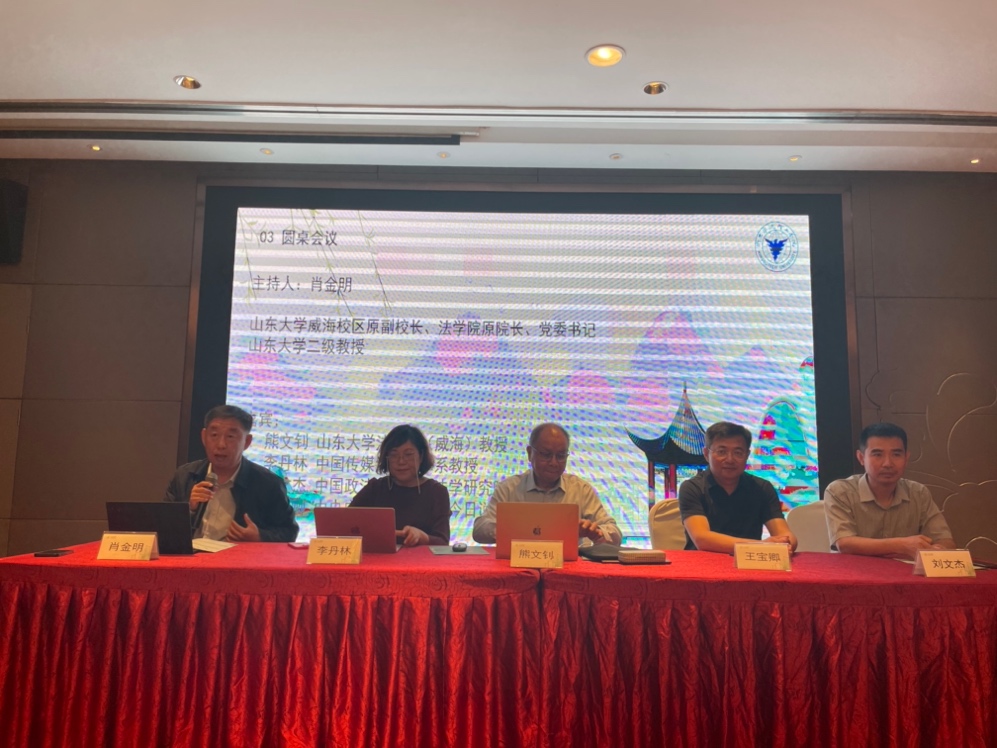 文化法治圓桌會議環(huán)節(jié)由肖金明教授主持,長期關(guān)注文化法學(xué)的著名公法學(xué)者、山東大學(xué)法學(xué)院(威海)熊文釗教授,中國傳媒大學(xué)文化產(chǎn)業(yè)管理學(xué)院李丹林教授,中國政法大學(xué)比較法學(xué)研究院劉文杰教授,中央廣播電視總臺《今日說法》欄目制片人王寶卿共四位專家學(xué)者分別以文化與法治為主題,探討了文化法治的思想融合及其學(xué)理性闡釋,對文化法學(xué)體系的建構(gòu)進行了研討。