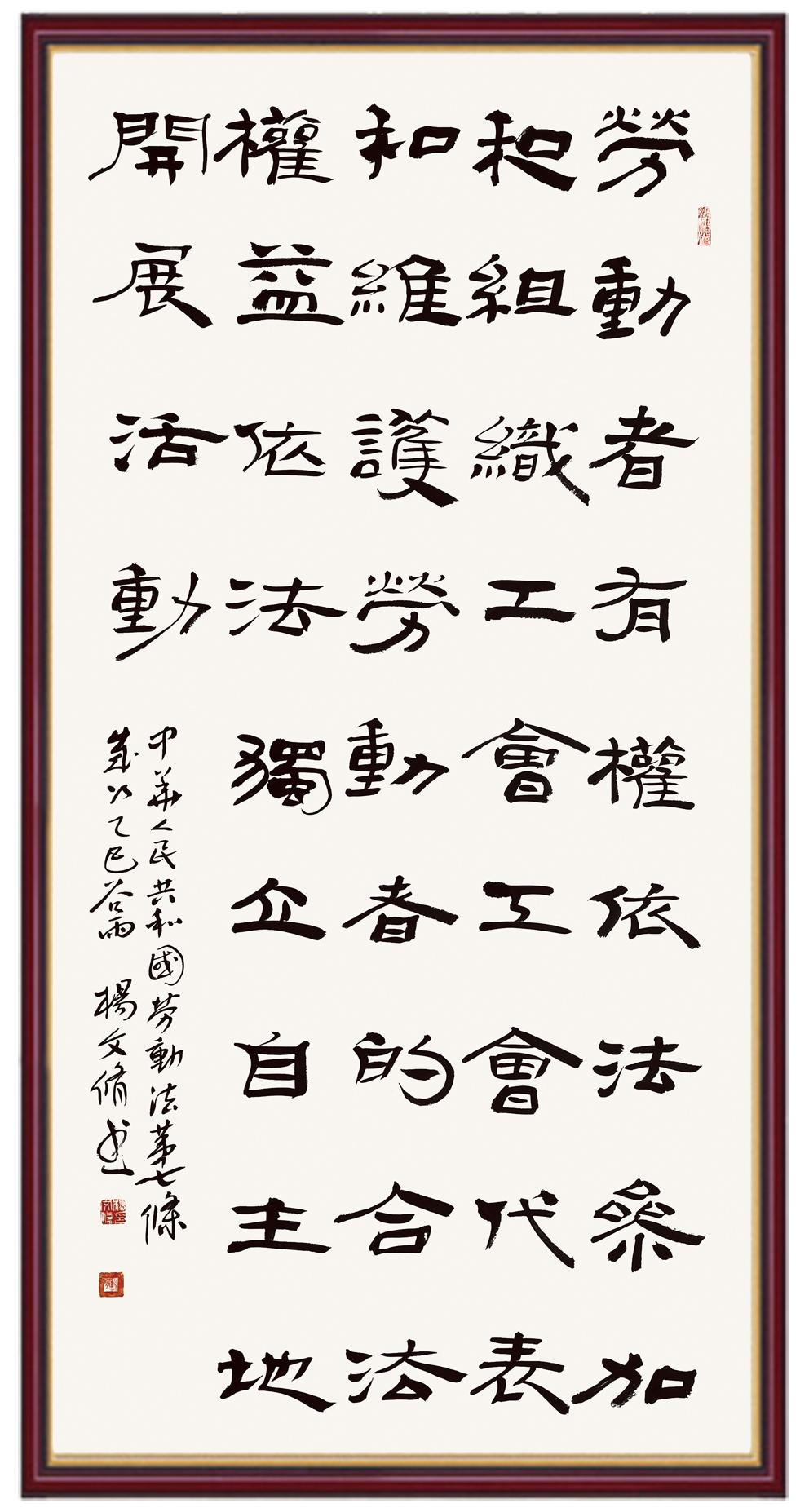 法律,是勞動者披荊斬棘的鎧甲;書法,是法治精神薪火相傳的載體。