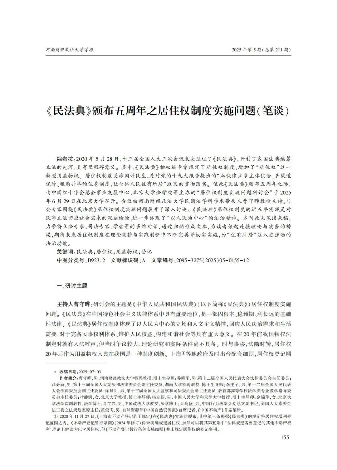 民法典頒布五周年之居住權(quán)制度實施問題(筆談)