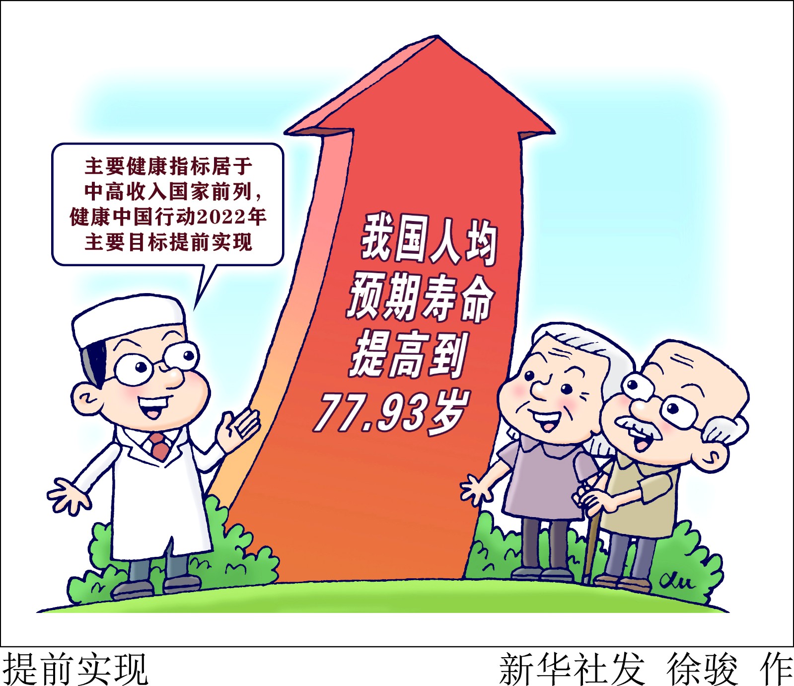 目前,我國(guó)人均預(yù)期壽命提高到77.93歲,主要健康指標(biāo)居于中高收入國(guó)家前列,健康中國(guó)行動(dòng)2022年主要目標(biāo)提前實(shí)現(xiàn),重大慢性病過(guò)早死亡率低于全球平均水平,健康中國(guó)行動(dòng)實(shí)施取得明顯階段性成效。