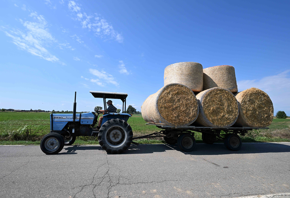 8月12日,在意大利倫巴第大區(qū)曼托瓦,農(nóng)民運送草垛。
