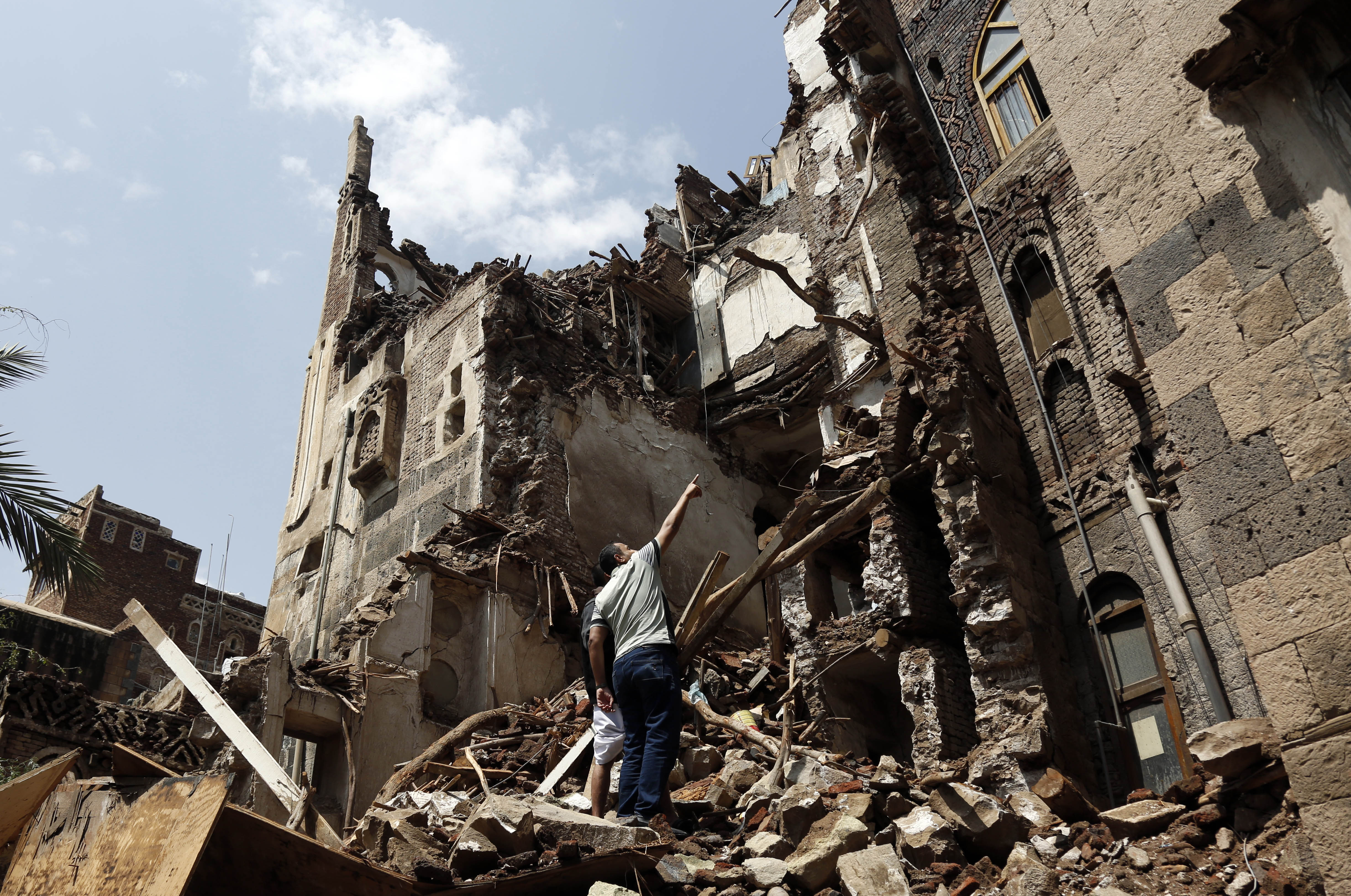 這是8月10日在也門薩那老城拍攝的受損建筑。