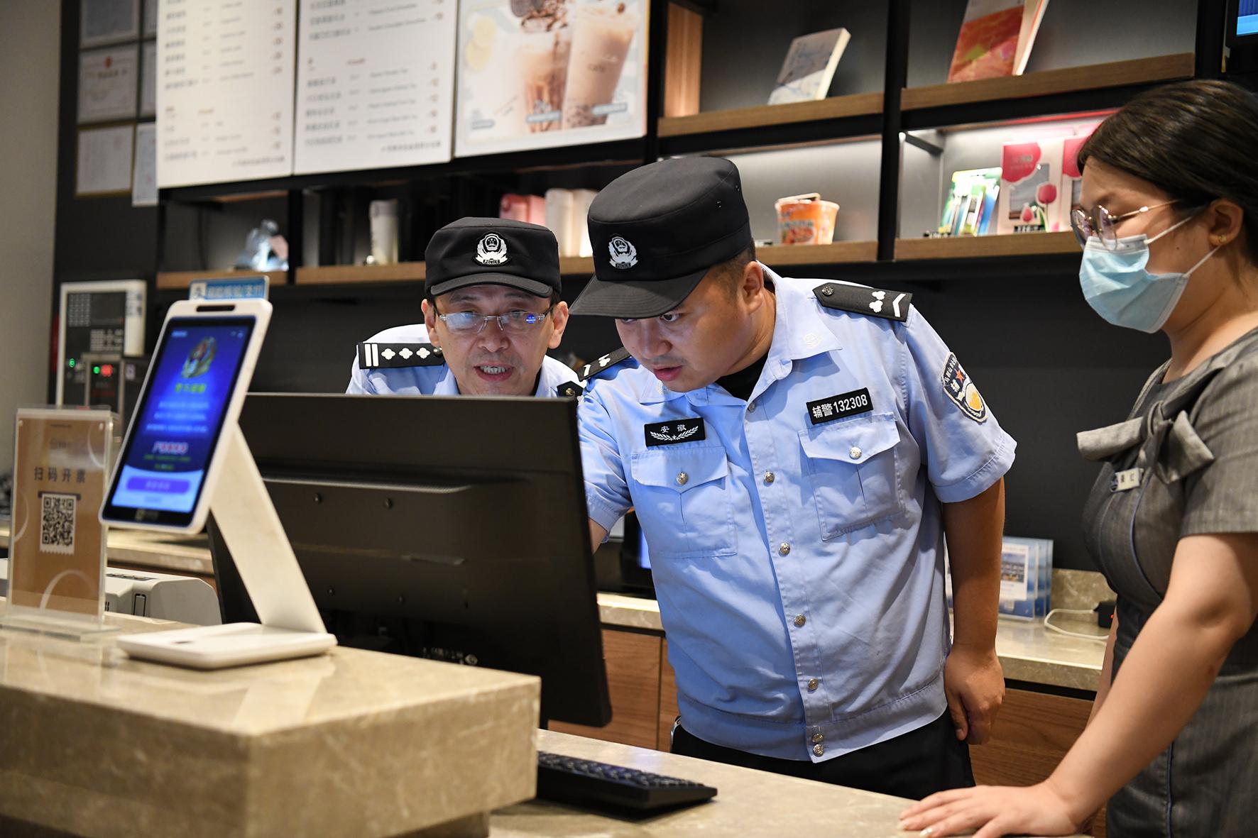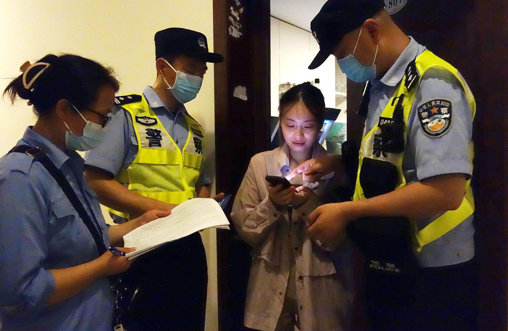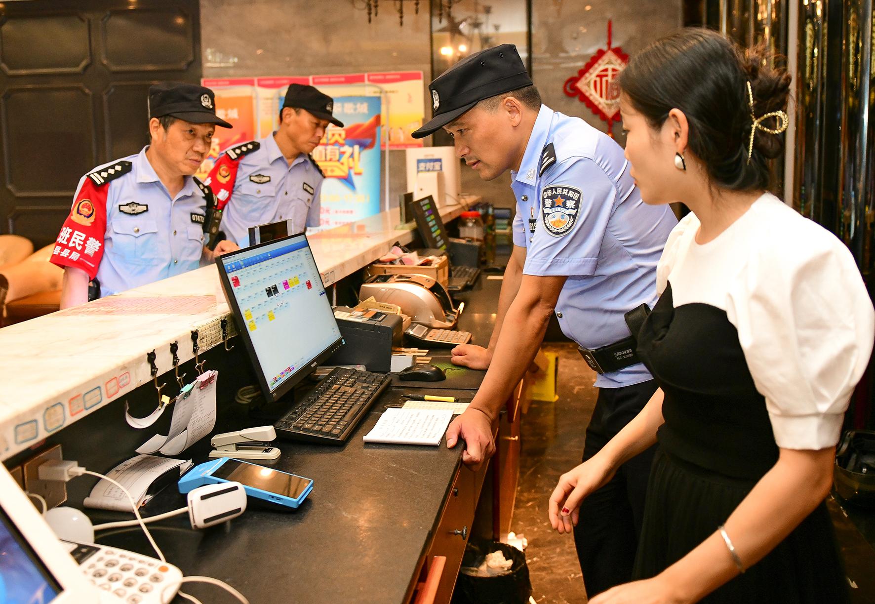 7月9日晚,安徽省馬鞍山市和縣公安局民警正在對(duì)歌廳、網(wǎng)吧等行業(yè)場(chǎng)所開展檢查,及時(shí)發(fā)現(xiàn)并消除治安隱患。
