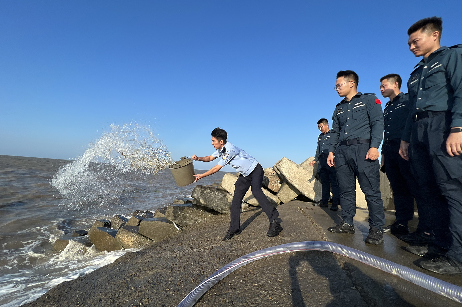 8月9日,長江航運公安局南通分局啟東派出所聯(lián)合啟東市人民檢察院、啟東市自然資源局、南通海警局啟東工作站等8家啟東江海保護聯(lián)盟單位,開展“增殖放流 共護海洋生態(tài)美”增殖放流活動。
