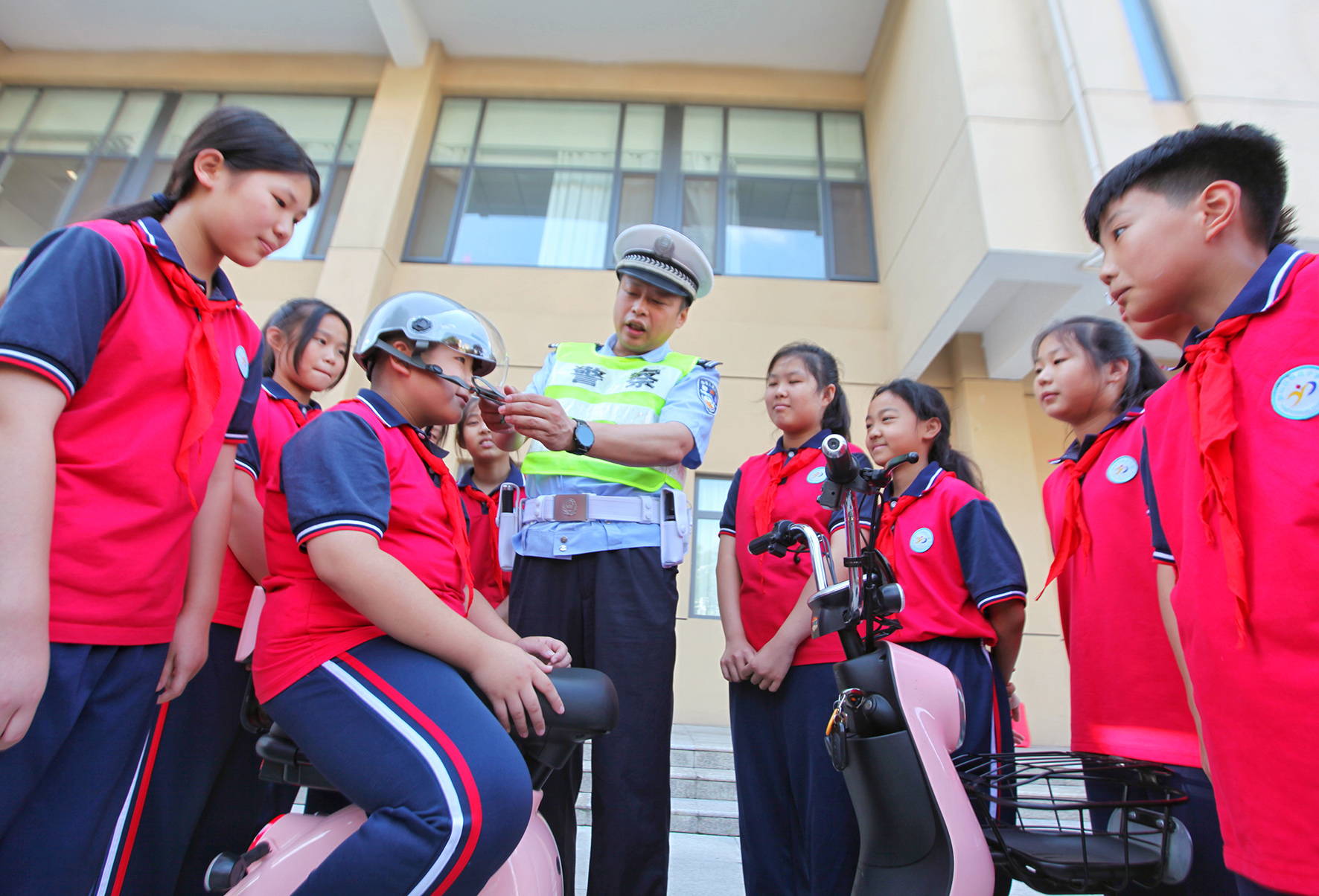 8月30日,河南省鄭州市公安局金水分局巡特警與花園路派出所的民輔警為轄區(qū)學(xué)校師生開(kāi)展上好“開(kāi)學(xué)第一課”活動(dòng)。
