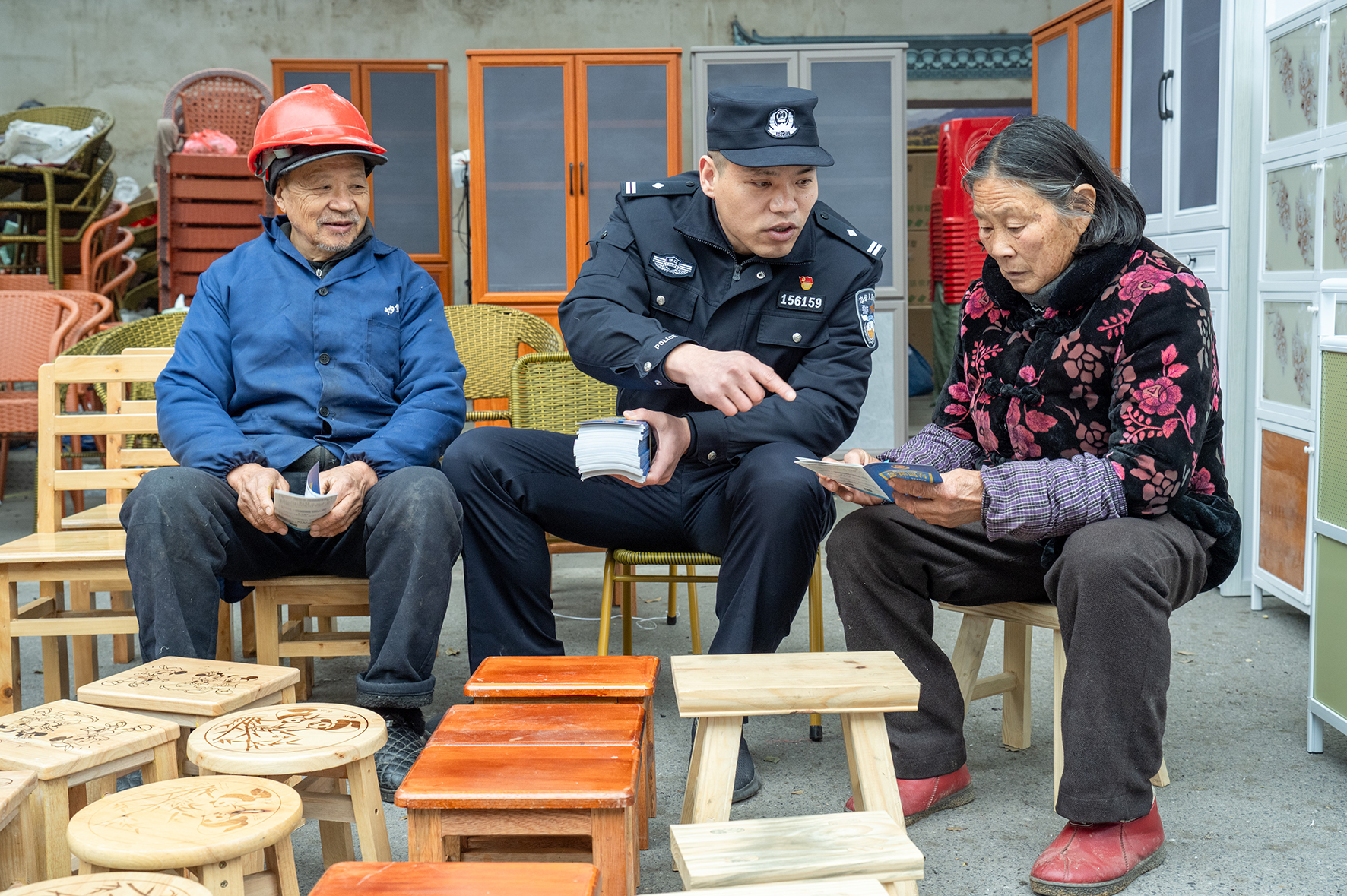 圖為1月15日,民警在走訪群眾了解社情民意,并進(jìn)行反詐等安全宣傳。