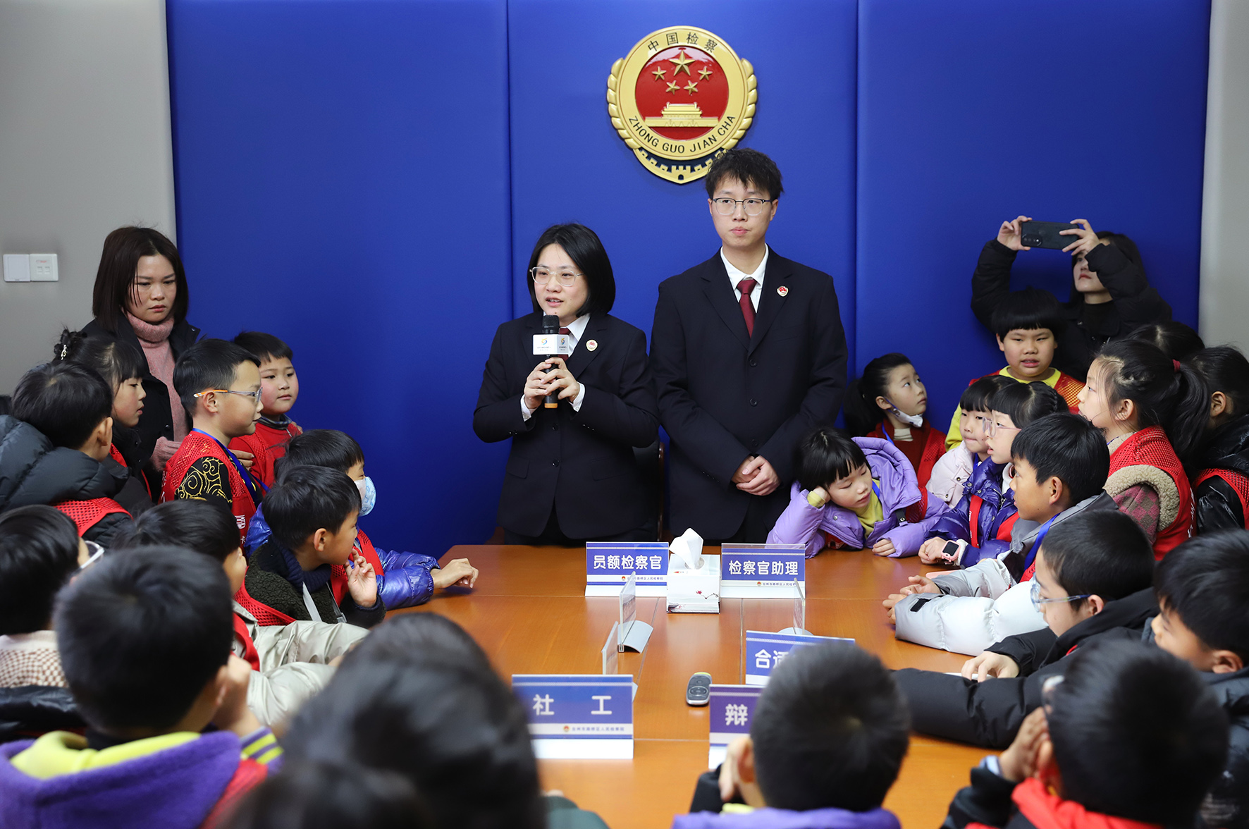 2月22日,浙江省臺州市路橋區(qū)人民檢察院開展檢察開放日活動,組織一批小記者走進檢察院參觀體驗。同時,檢察官還為小記者們上了一堂法治“開學(xué)第一課”。
