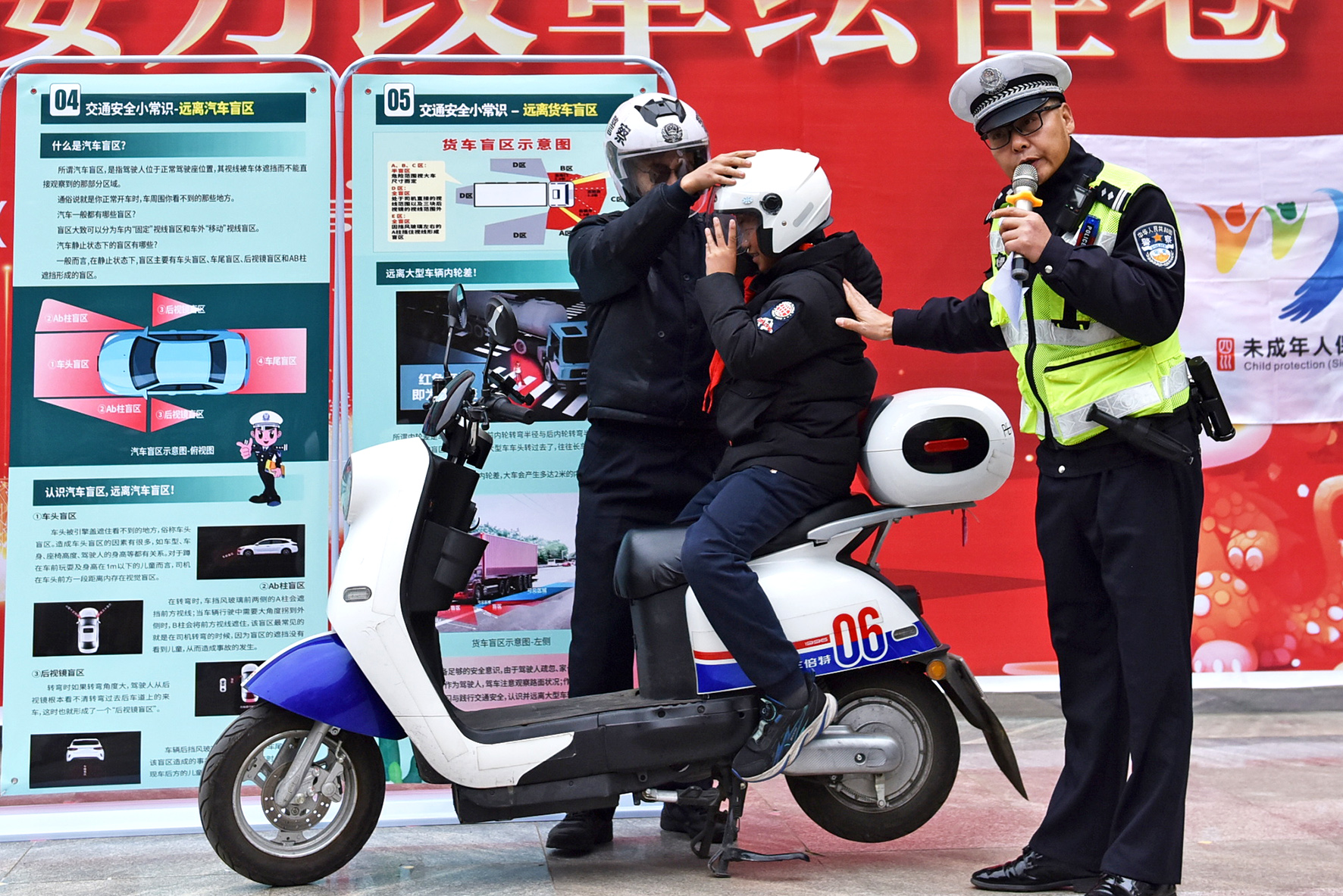 3月6日,四川省綿陽市公安局交警支隊(duì)直屬一大隊(duì)民警走進(jìn)轄區(qū)小學(xué)開展交通安全主題宣傳活動(dòng),通過現(xiàn)場情景模擬和宣傳展板向同學(xué)們講解“一盔一帶”、車輛盲區(qū)等安全常識,進(jìn)一步增強(qiáng)小學(xué)生的交通安全意識。