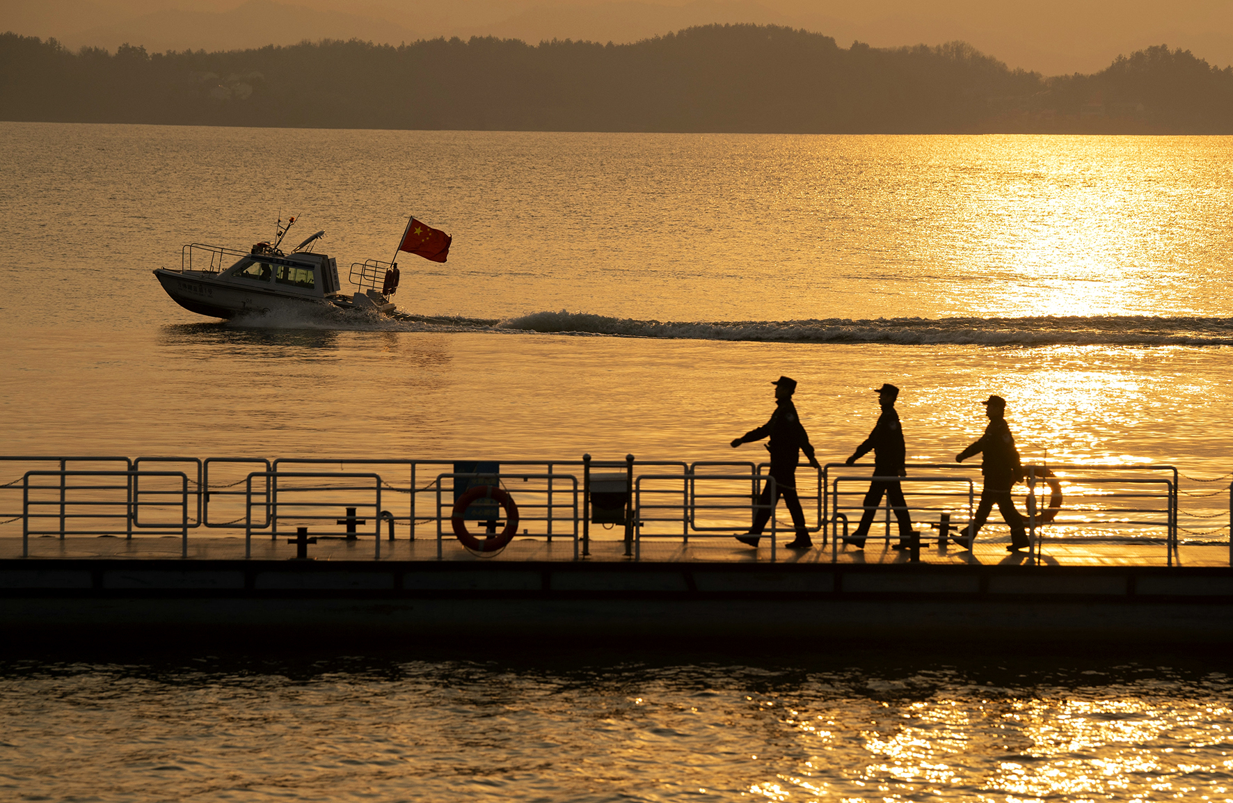 3月12日,夕陽映照著安徽省舒城縣公安局旅游警察大隊民輔警巡邏的身影。