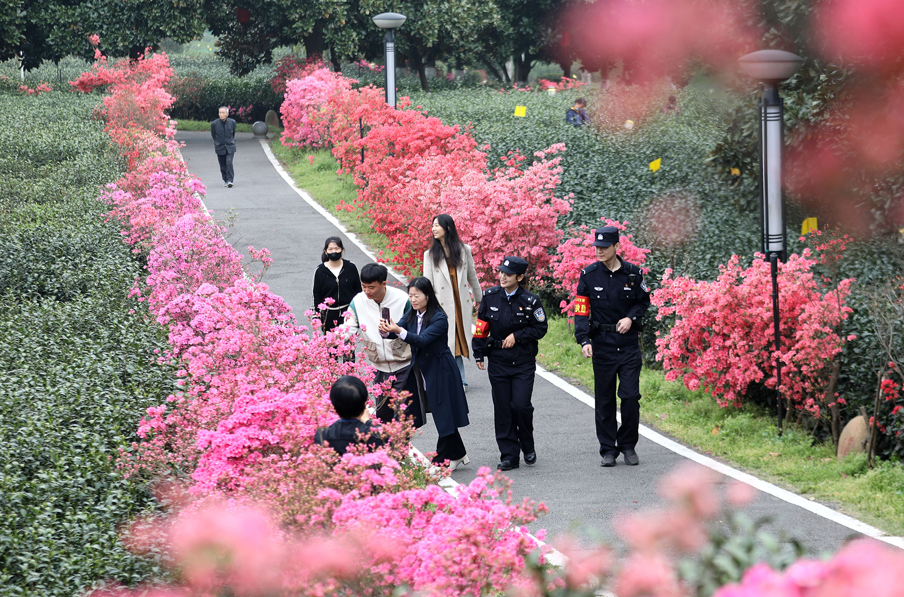人間最美四月天,踏春賞花正當時。4月7日,安徽省舒城縣公安局舒茶派出所組織警力在轄區(qū)九一六茶園巡邏守護,為游客提供解答咨詢、求助報警、安全提示、游園引導等服務。