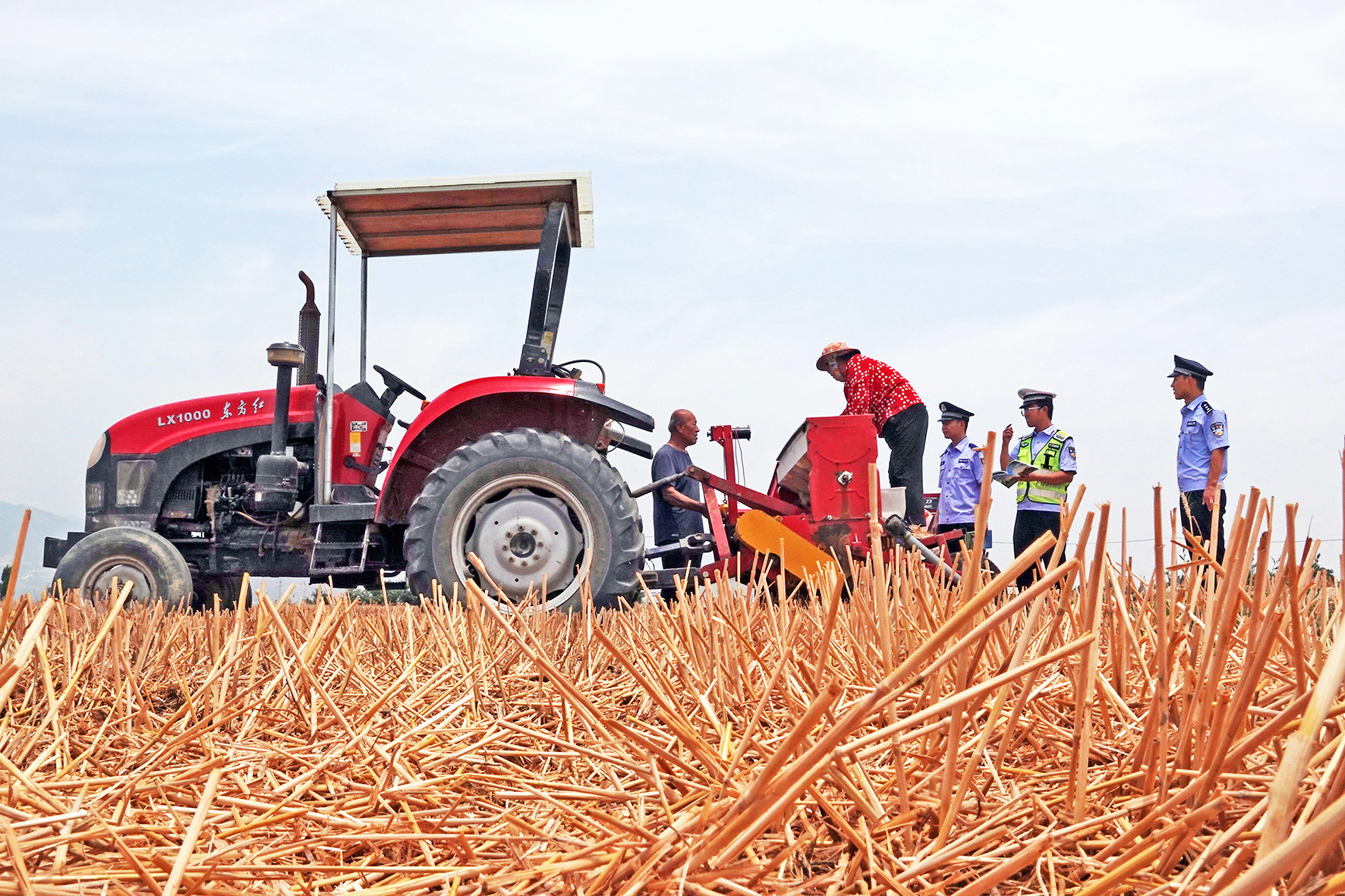 6月11日,山西省運(yùn)城市新絳縣公安局澤掌派出所聯(lián)動(dòng)交警部門在澤掌鎮(zhèn)澤掌村田間,為農(nóng)機(jī)手講解三夏安全駕駛注意事項(xiàng)。