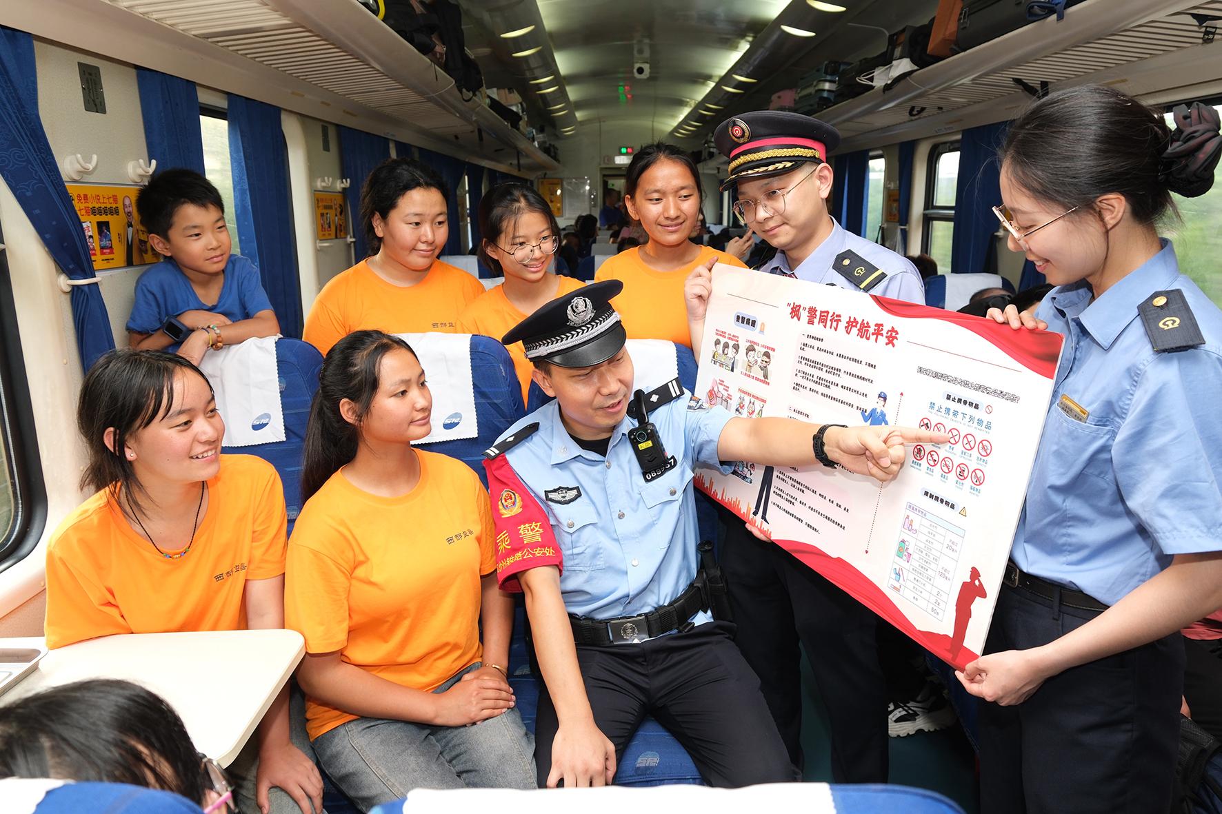 8月17日,杭州鐵路公安處乘警支隊(duì)乘務(wù)一大隊(duì)聯(lián)合杭州客運(yùn)段甬西車隊(duì)在寧波開(kāi)往西安的K466次列車上,開(kāi)展“‘楓’警同行 護(hù)航平安”的乘車安全宣講活動(dòng)。