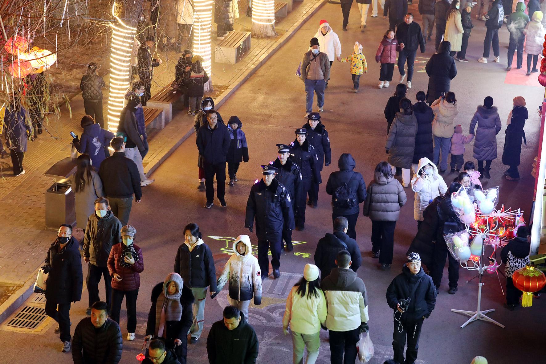 2月11日,山東省棗莊市公安局市中分局交通警察大隊組織民輔警在花燈會的主干道重點路段、路口設置臨時執(zhí)勤點,保障道路安全暢通和賞燈游玩的群眾出行安全。