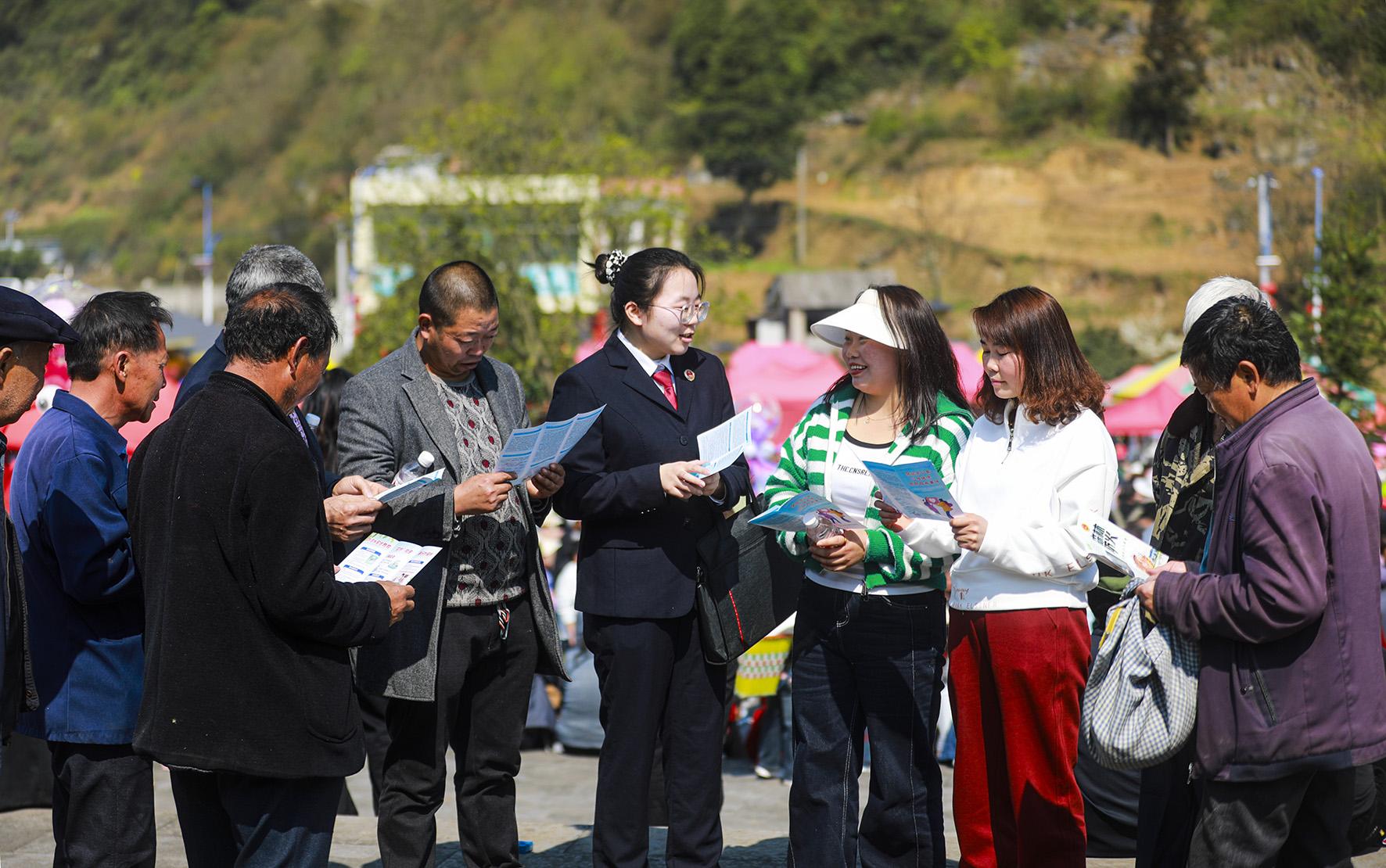 3月25日,貴州省黔西市人民檢察院組織干警走進(jìn)一年一度的苗族花坡節(jié),給群眾普及民法典等法律知識,解答相關(guān)法律咨詢,提升群眾的防范意識和依法維權(quán)能力。