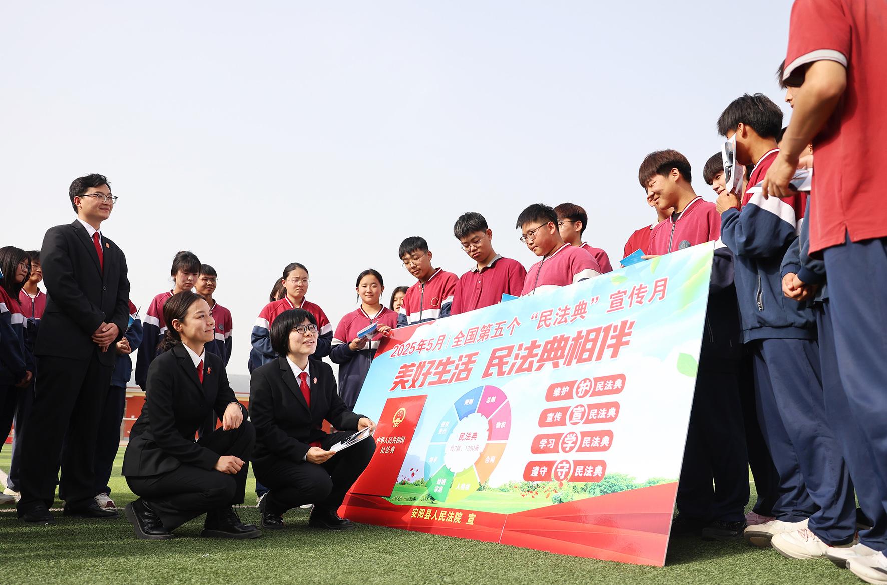 5月7日,河南省安陽縣人民法院組織干警走進(jìn)明博高級中學(xué)開展“民法典進(jìn)校園”普法宣傳活動。