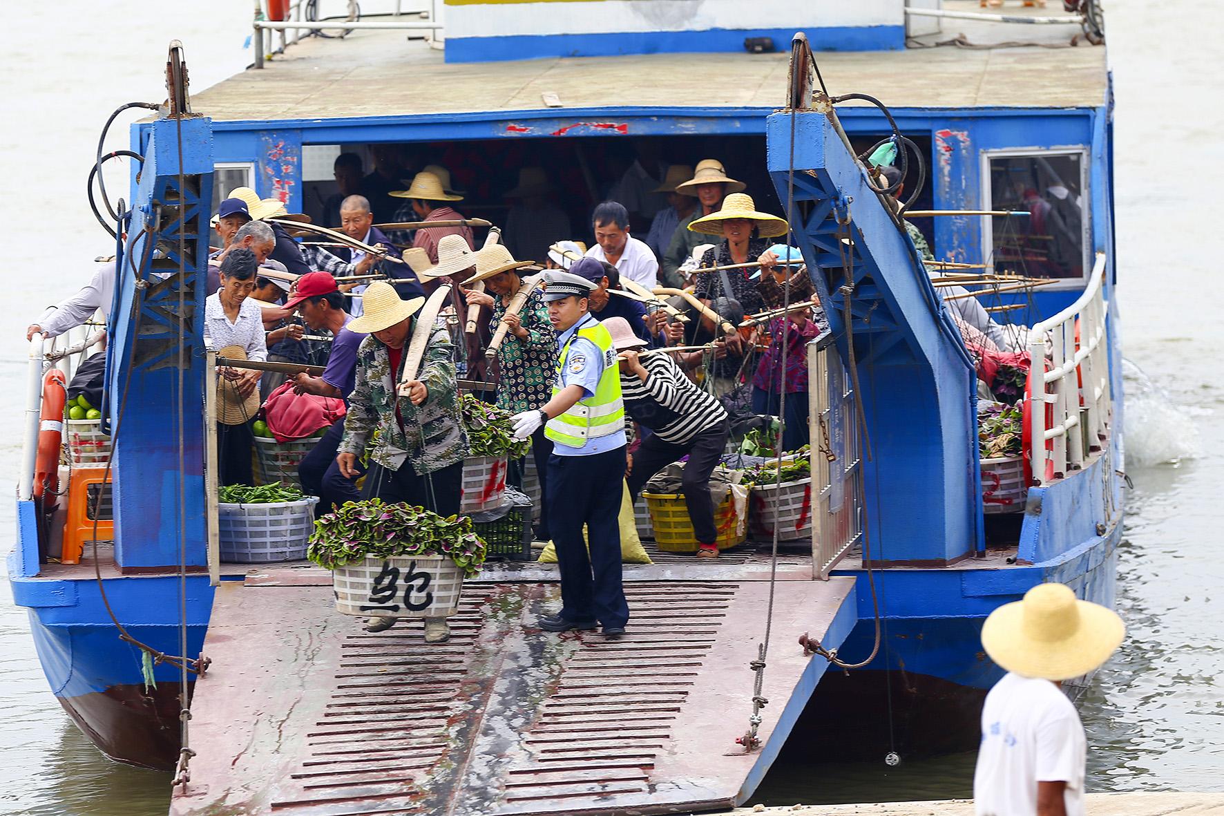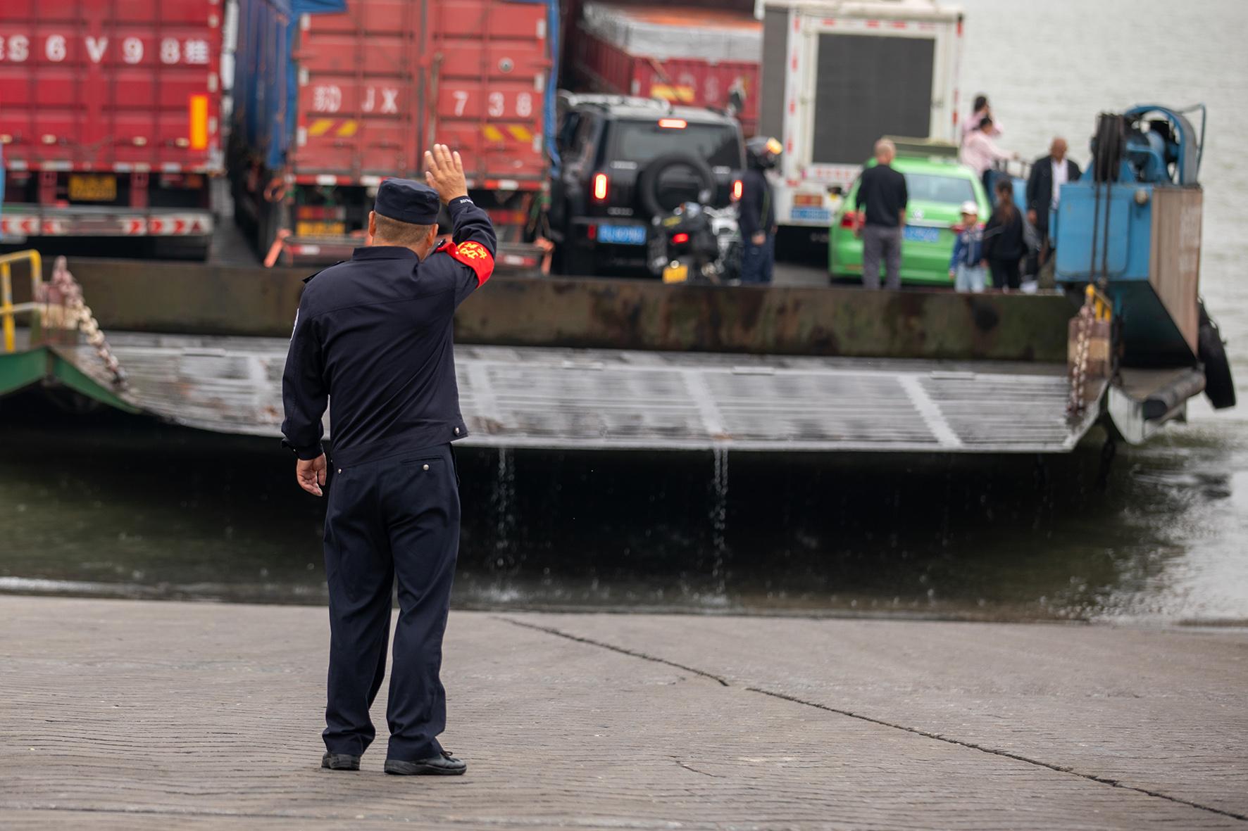 5月3日,安徽省銅陵市公安局交警支隊(duì)輔警堅(jiān)守在郊區(qū)大通古鎮(zhèn)與長(zhǎng)江江心洲之間的船運(yùn)渡口,保障江心洲上的菜農(nóng)運(yùn)輸蔬菜來(lái)往安全。
