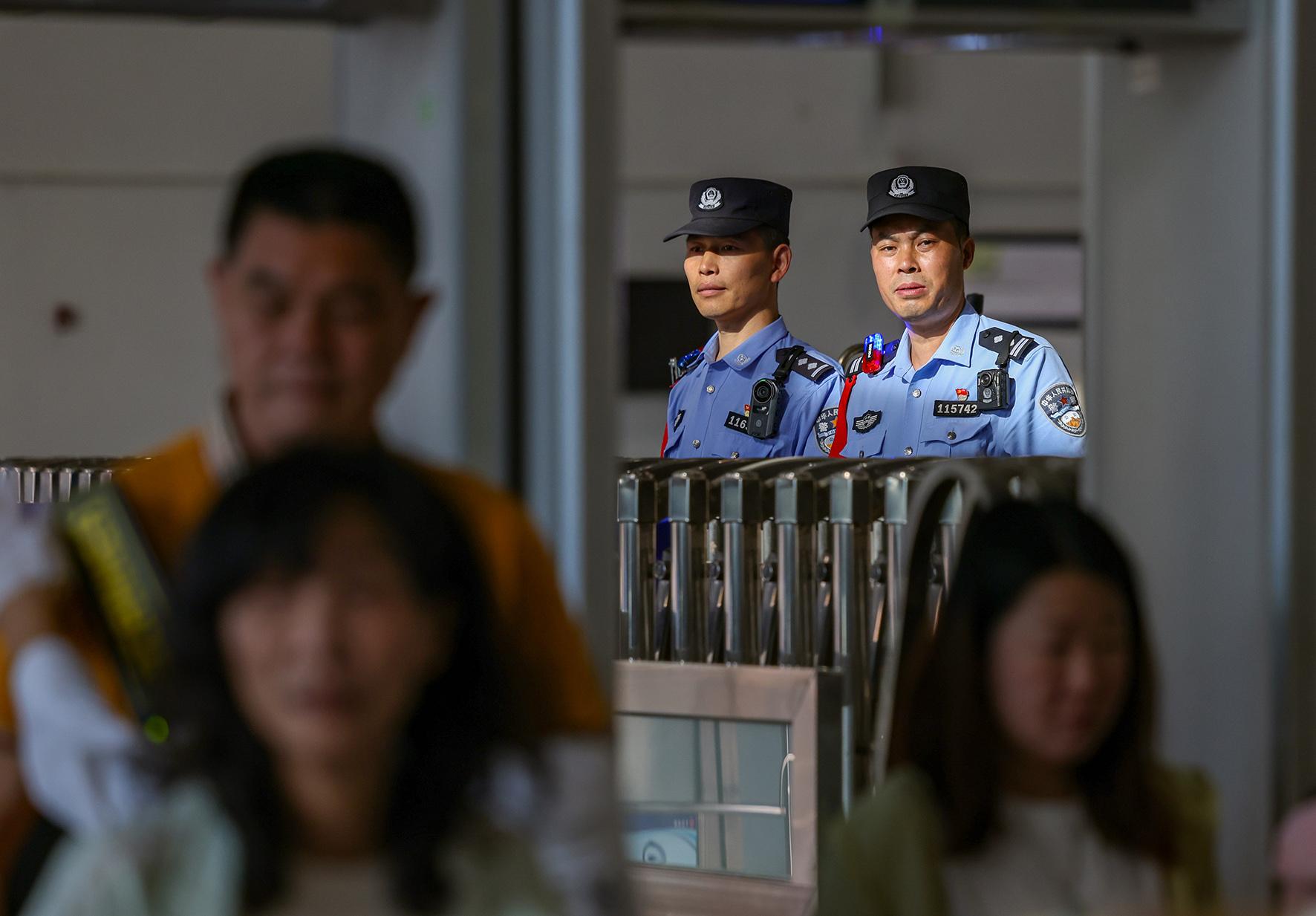 5月5日,安徽省舒城縣高鐵東站迎來(lái)“五一”假期返程高峰。舒城縣公安局千人橋派出所高鐵東站警務(wù)站民警輔警在入站口平臺(tái)疏導(dǎo)交通、服務(wù)群眾,確保返程旅客平安出行。