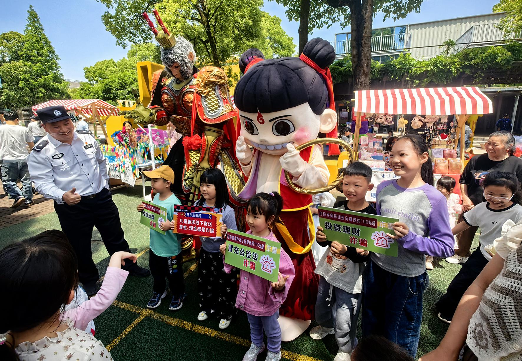 5月1日,浙江省臺(tái)州市公安局椒江分局海門派出所民警走進(jìn)轄區(qū)兒童樂(lè)園,開(kāi)展反詐宣傳活動(dòng)。