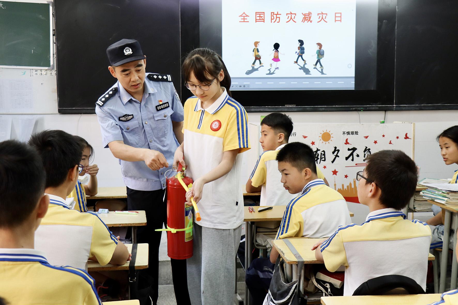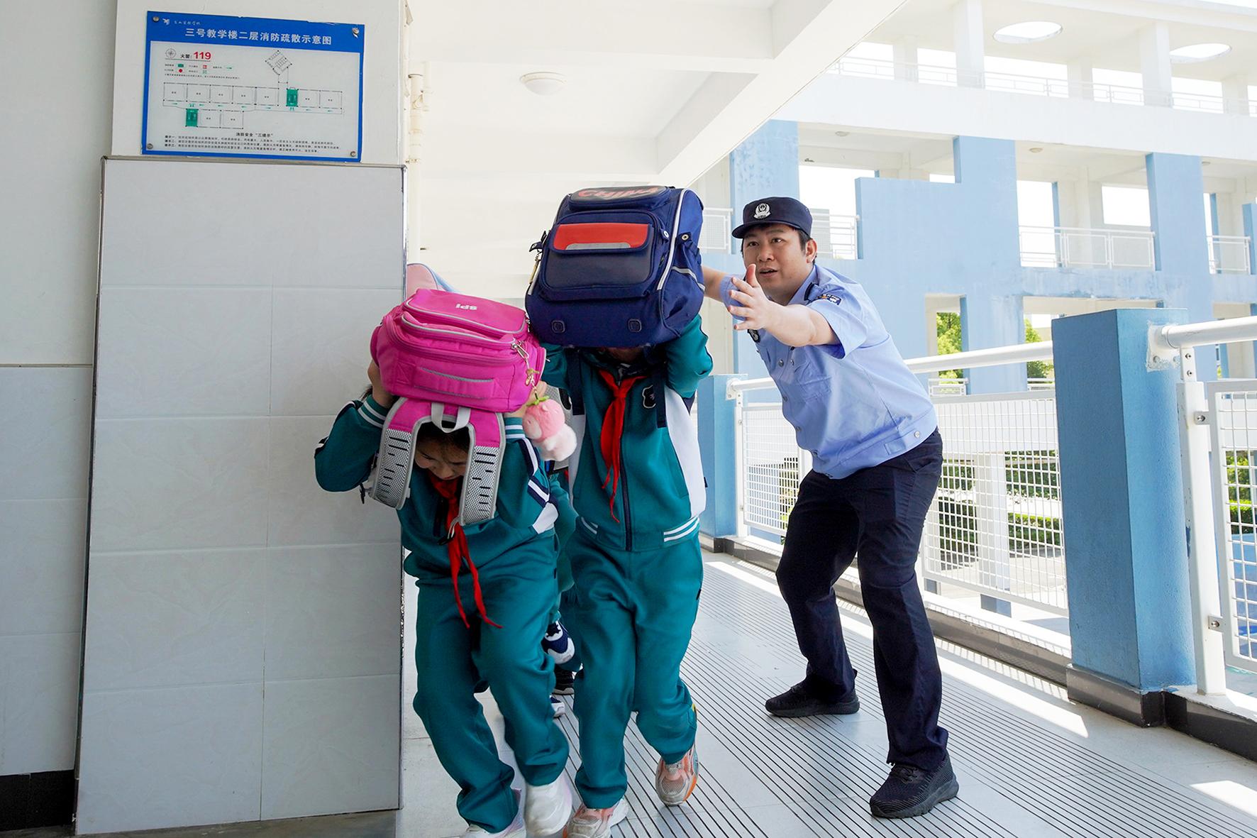 5月12日,安徽省合肥市公安局瑤海分局龍崗派出所民警聯(lián)合合肥義警走進轄區(qū)校園開展防災(zāi)減災(zāi)宣傳教育活動。