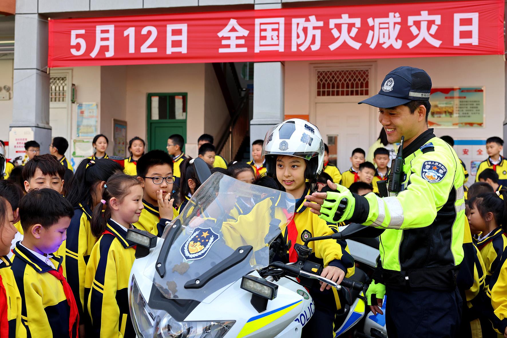 5月12日,山東省棗莊市公安局市中分局交通警察大隊組織民輔警走進校園開展主題宣傳活動,增強學(xué)生們防災(zāi)減災(zāi)和避險意識,提高遇險防范自救能力。