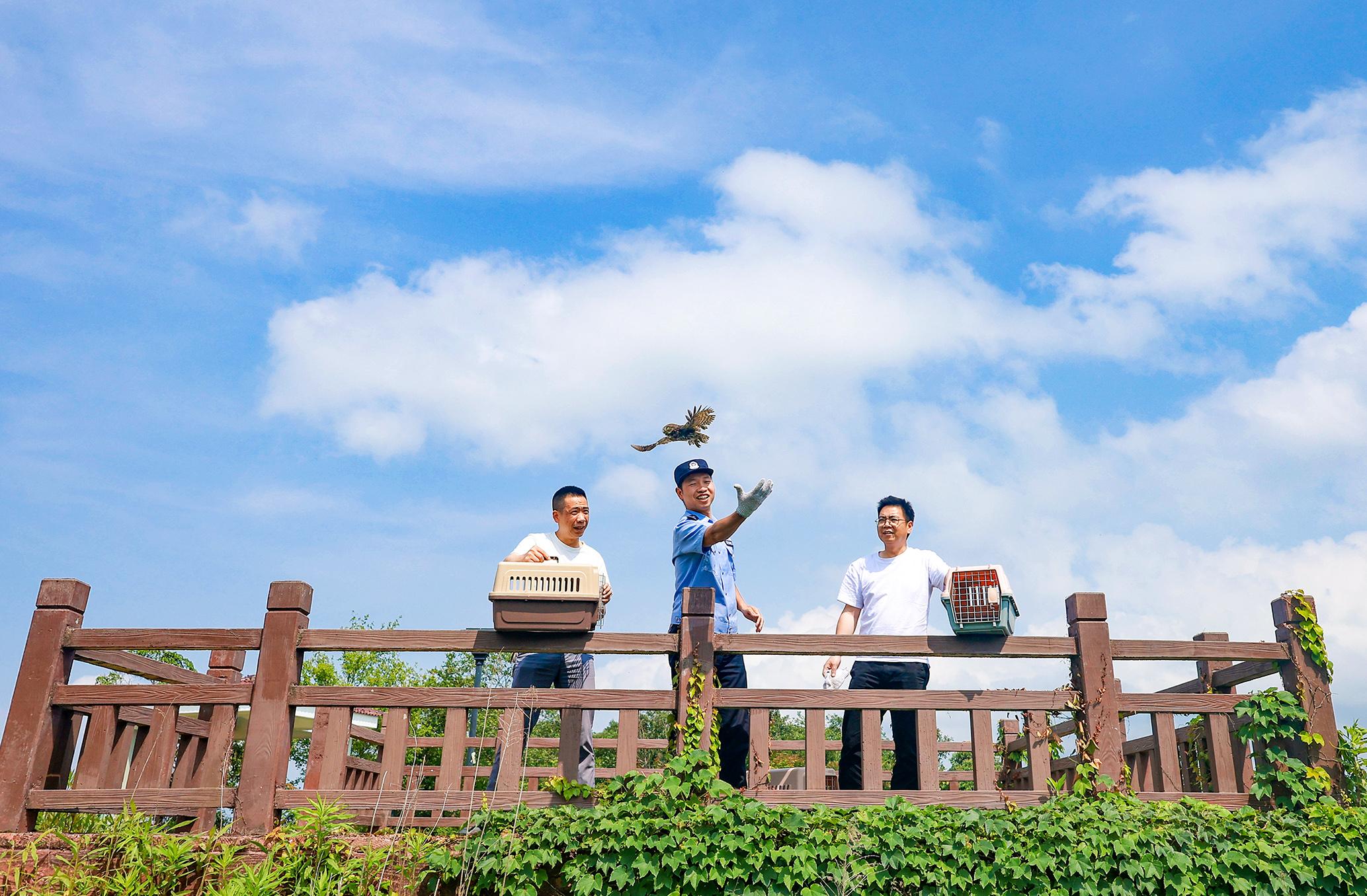 5月27日,浙江省三門縣公安局聯(lián)合三門縣自然資源和規(guī)劃局在望海樓,將10只收容救護(hù)的國家二級保護(hù)動物斑頭鵂鹠放歸大自然。