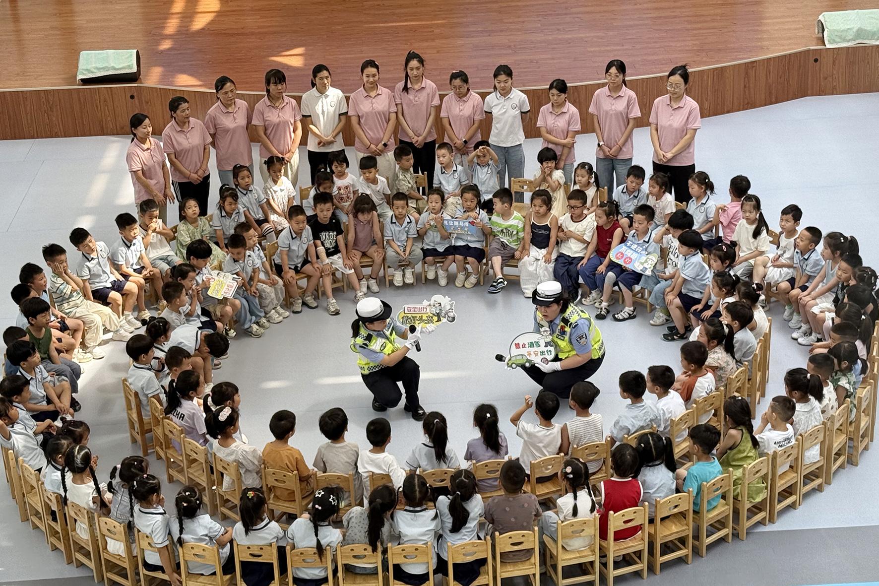 6月24日,陜西省大荔縣公安局交通管理大隊(duì)城區(qū)中隊(duì)民輔警們走進(jìn)轄區(qū)幼兒園,開展交通安全知識宣講。