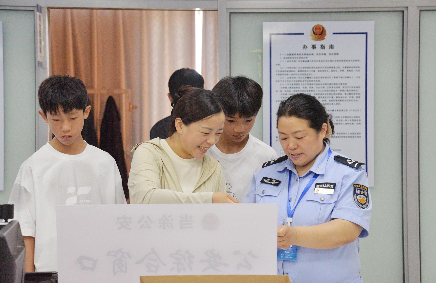 暑期來臨,安徽省當(dāng)涂縣政務(wù)中心公安窗口迎來了新一輪的辦證高峰。7月1日,當(dāng)涂縣公安局駐縣政務(wù)服務(wù)中心公安綜合服務(wù)窗口輔警為市民辦理業(yè)務(wù)。