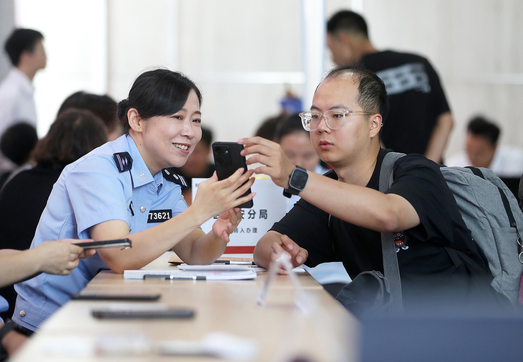 7月11日,湖北省荊門市公安局高新區(qū)·掇刀區(qū)分局掇刀石派出所將戶政窗口前移至企業(yè)園區(qū),通過“湖北公安政務(wù)服務(wù)平臺(tái)”為新入職大學(xué)生現(xiàn)場(chǎng)辦理戶籍遷移手續(xù)。