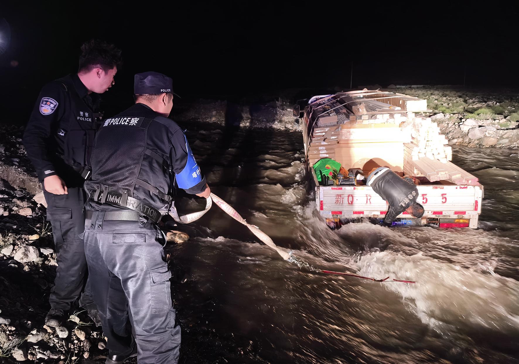 7月30日凌晨1時(shí)許,新疆喀什邊境管理支隊(duì)達(dá)布達(dá)爾邊境派出所接群眾報(bào)警求助稱(chēng):一輛滿(mǎn)載建筑物資的車(chē)輛被困河道中央。接警后,達(dá)布達(dá)爾邊境派出所迅速啟動(dòng)應(yīng)急預(yù)案,組織民警攜帶救援設(shè)備前往事發(fā)地點(diǎn)展開(kāi)救援。歷時(shí)約2小時(shí),將被困車(chē)輛轉(zhuǎn)移至安全區(qū)域。