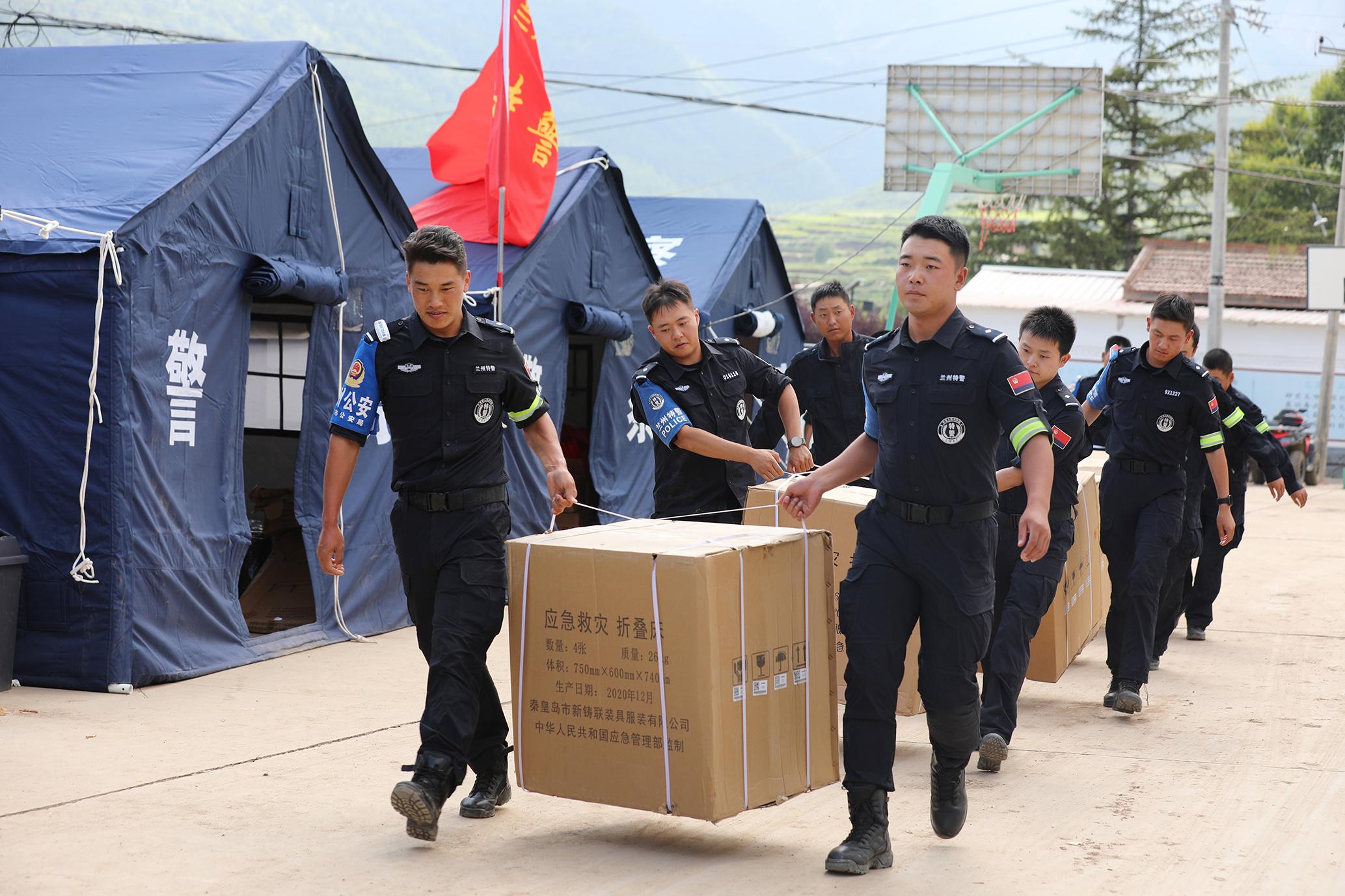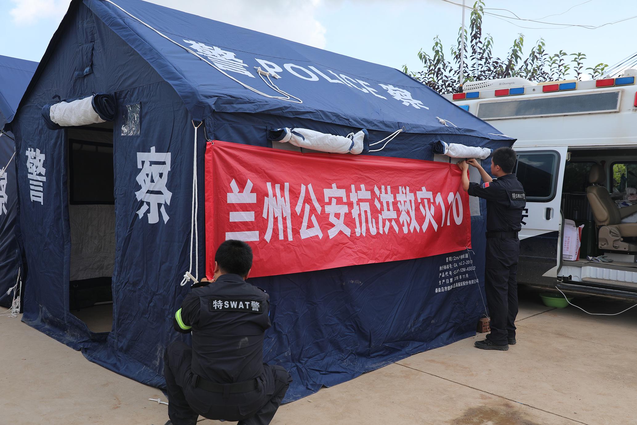 8月12日,甘肅省蘭州市公安局特警支隊支援榆中洪澇災害警力在榆中縣馬坡鄉(xiāng)馬蓮灘村分指揮部屯警點設立“蘭州公安抗洪救災110”,將警力前置,24小時駐扎在災區(qū)前沿,第一時間開展各項災后工作。