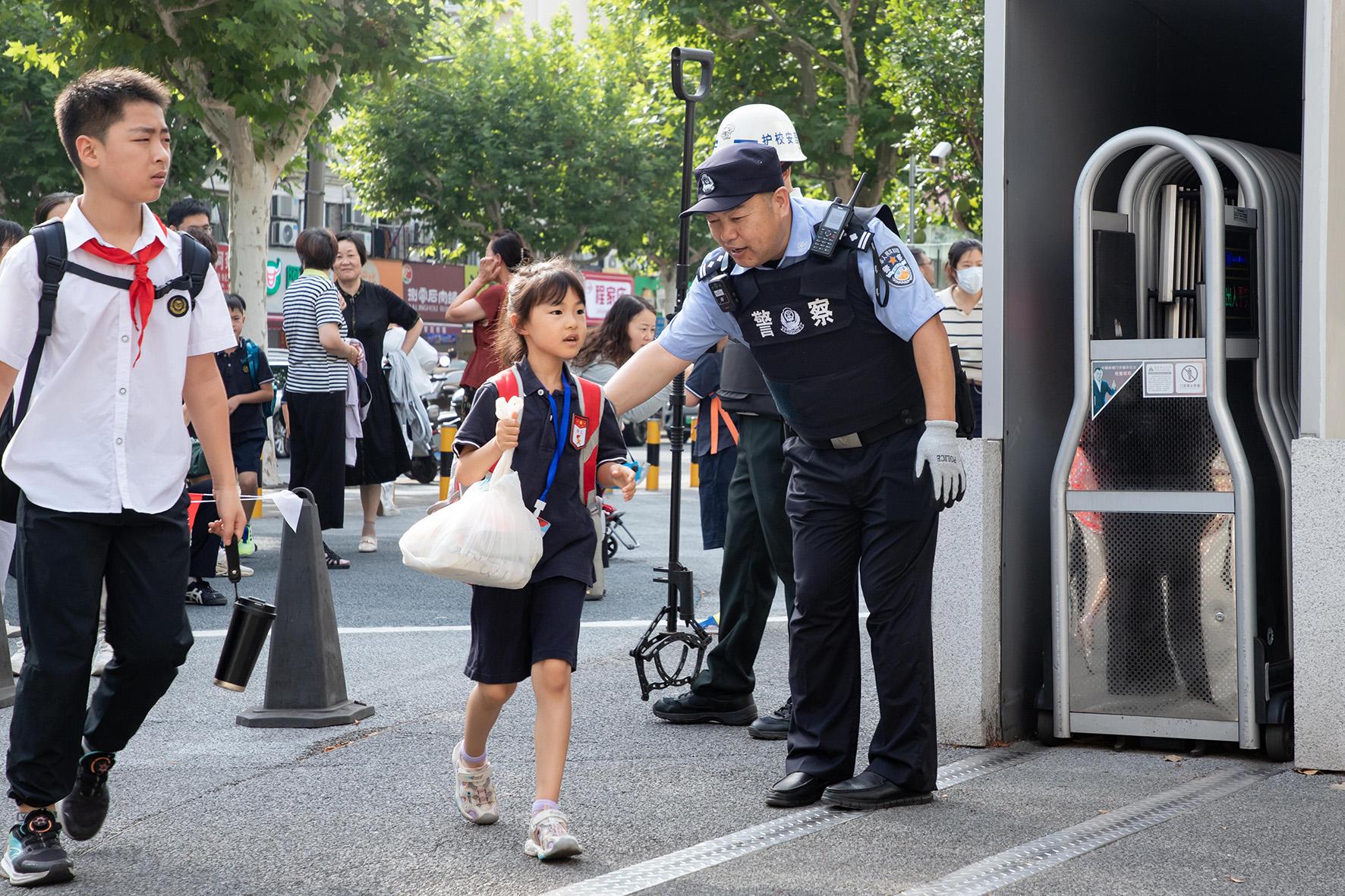 9月1日,安徽省合肥市公安局瑤海分局大通路派出所民警在滁州路小學(xué)護(hù)學(xué)崗執(zhí)勤。