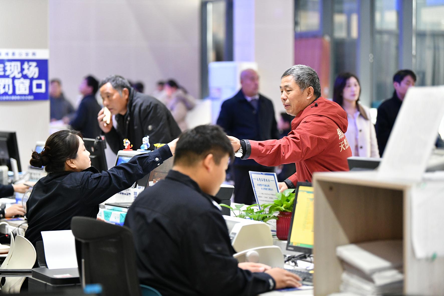 10月20日,安徽省阜南縣公安局車輛和駕駛?cè)斯芾硭ぷ魅藛T為群眾辦理車駕管業(yè)務(wù)。阜南縣公安局車輛和駕駛?cè)斯芾硭鶊允亍叭罕姷谝弧⑿实谝?、質(zhì)量第一”的服務(wù)模式,窗口服做到溝通咨詢零距離、服務(wù)管理零延誤、服務(wù)質(zhì)量零差錯、線上線下零障礙,為群眾提供優(yōu)質(zhì)、高效的車駕管服務(wù)。