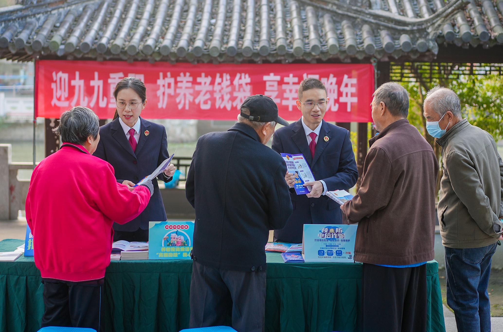 10月27日,江蘇省興化市人民檢察院走進(jìn)公園開(kāi)展“迎九九重陽(yáng) 護(hù)養(yǎng)老錢袋 享幸福晚年”的主題活動(dòng)。