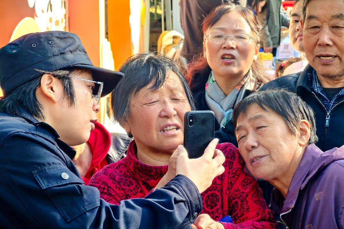 10月29日,在江蘇省如皋市新時(shí)代文明實(shí)踐市集反詐宣傳攤位前,如皋市公安局反詐中心民輔警為老年群體帶來(lái)量身定制的反詐“微課堂”。