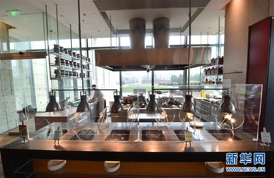 天津香格里拉大酒店自助餐廳內的餐臺上沒有擺放菜品(8月16日攝)。 日前,為鼓勵消費者文明用餐,天津市多家酒店自助餐廳推出小份菜、半份菜,將原來的自取就餐調整為點餐制,并根據(jù)當日預定用餐人數(shù)和入住率等情況,合理分配餐食供應。 新華社發(fā)(趙子碩 攝)